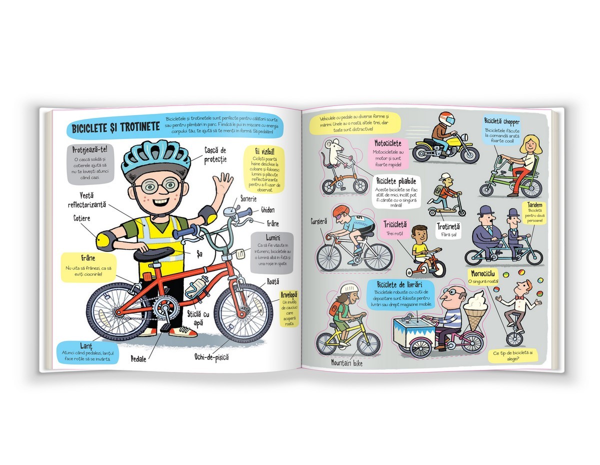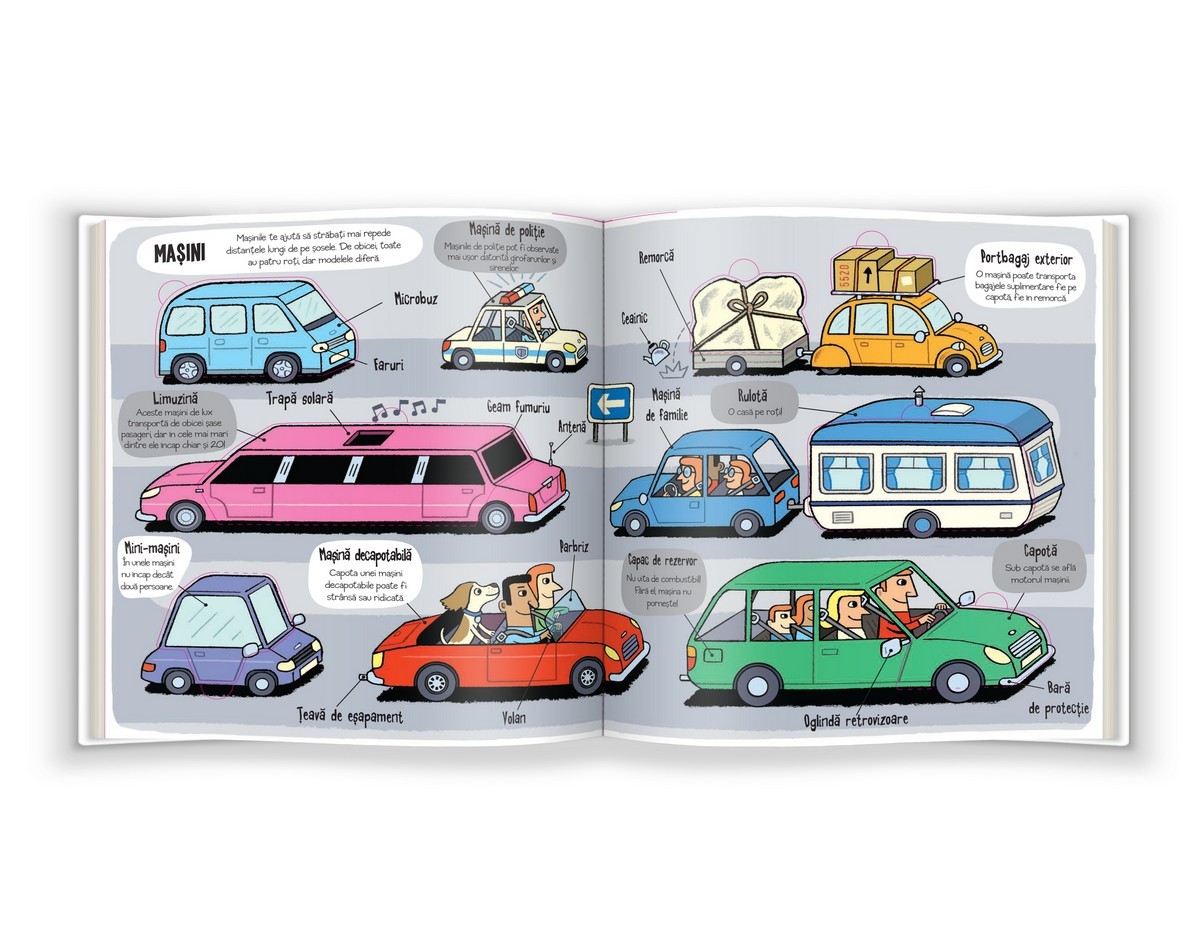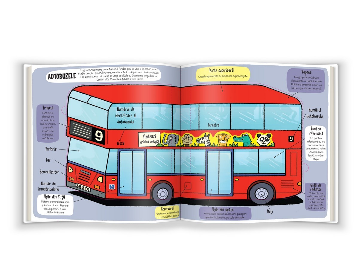 Mijloacele de transport – terestru, fluvial, maritim sau aerian – i-au fascinat dintotdeauna pe copii. Această mini-enciclopedie din cadrul colecției „Micii exploratori”, le oferă prilejul să descopere o mulțime de informații interesante despre vehicule de tot felul, unele „ascunse” sub cele peste 30 de clapete ale cărții.