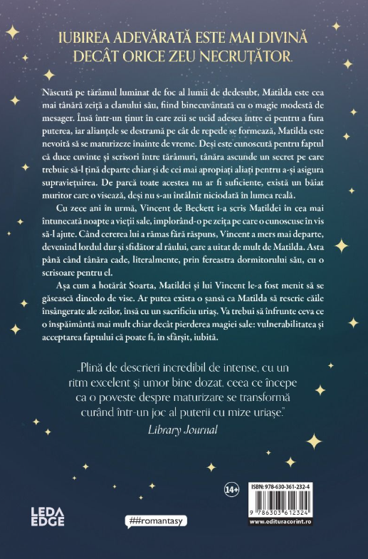 Însă într-un ţinut în care zeii se ucid adesea între ei pentru a fura puterea, iar alianţele se destramă pe cât de repede se formează, Matilda este nevoită să se maturizeze înainte de vreme.