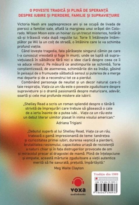 „În Viața ca un râu, Shelley Read oferă povestea cutremurătoare și în același timp reconfortantă a unei fete care devine femeie într-o lume a bărbaților. Tânăra Victoria Nash este la fel de dură și de viguroasă ca munții din Colorado în care își găsește refugiu și la fel de delicată ca piersicile care constituie moștenirea familiei sale.“ Tiffany Quay Tyson