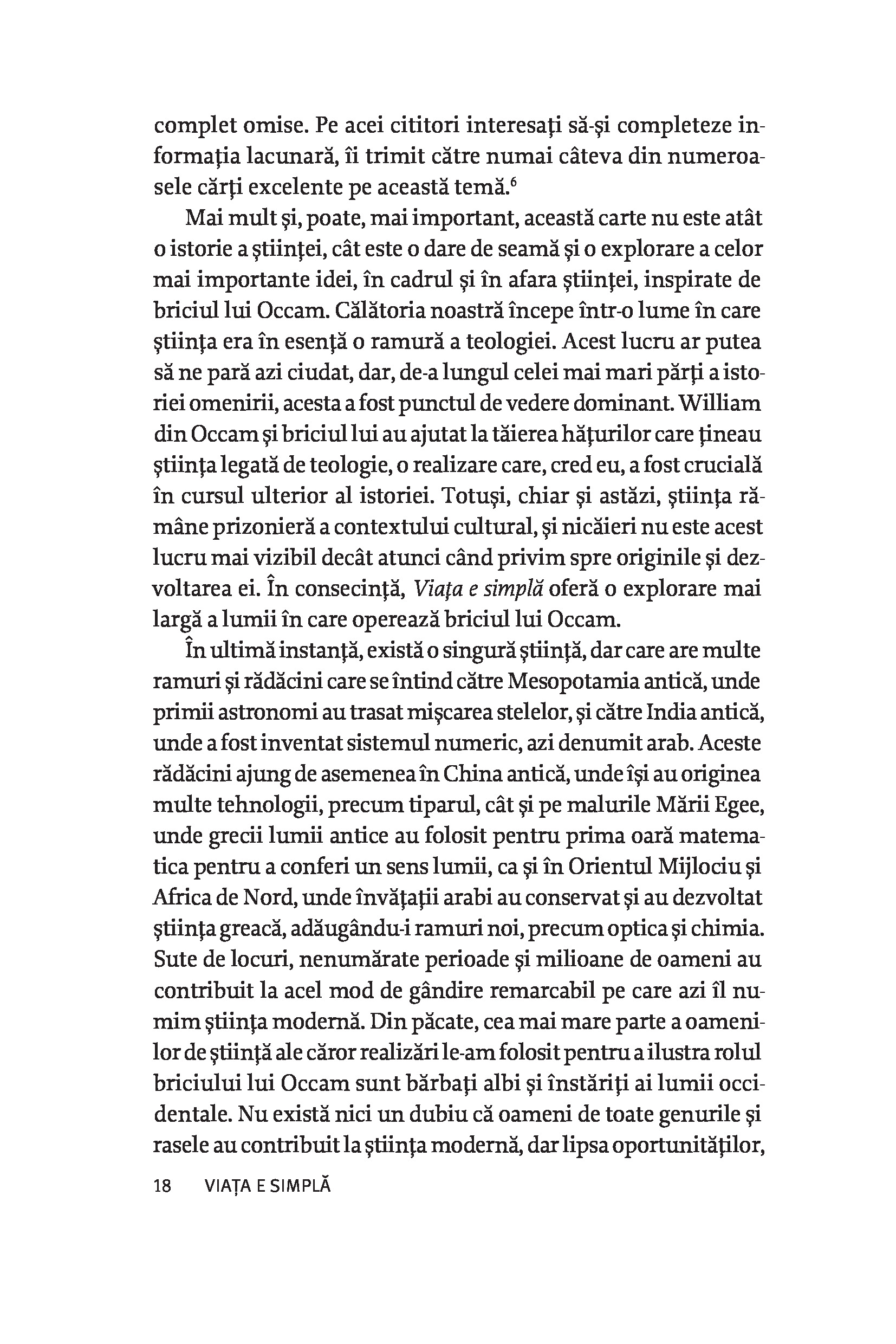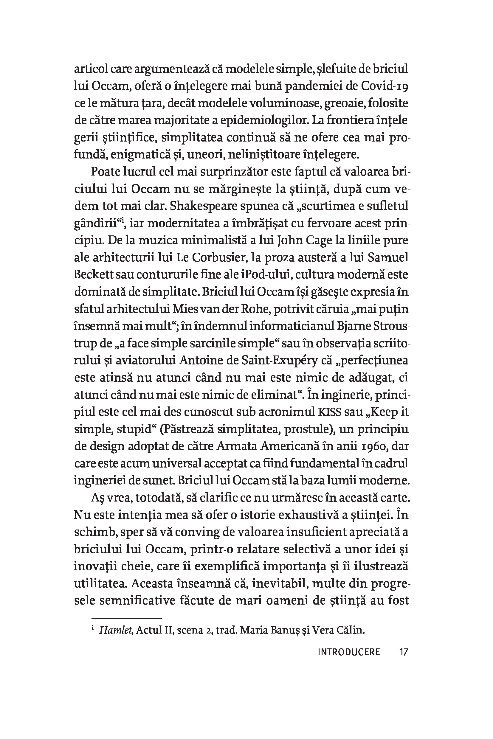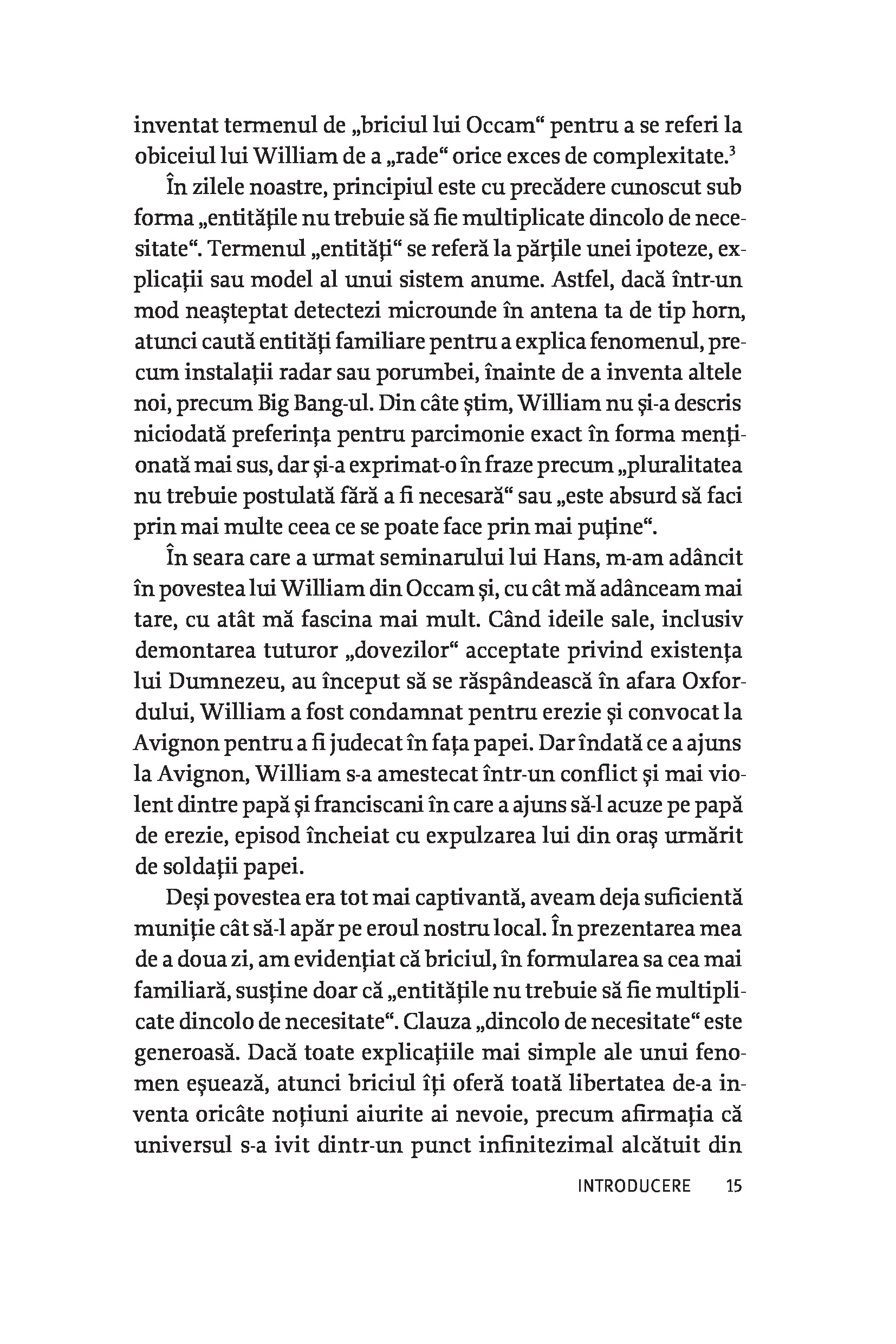 Dar poate cel mai fertil aspect al acestui frumos excurs în istoria unei idei este ipoteza pe care o lansează, anume aceea că simplitatea lui Occam, principiu metodologic aflat la baza reprezentării moderne a lumii, ar fi totodată modul de operare al vieții înseși.