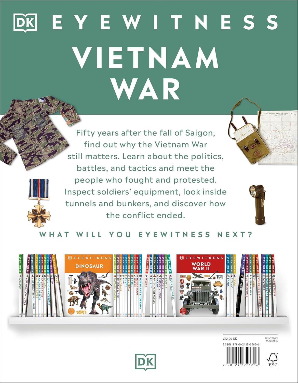 Eyewitness Vietnam War introduces children to the roots of the conflict, from colonial struggles to Cold War tensions, and how these shaped the Vietnam War's course. Children can learn about the significant battles, strategies and political movements that influenced the war's outcome and its aftermath.