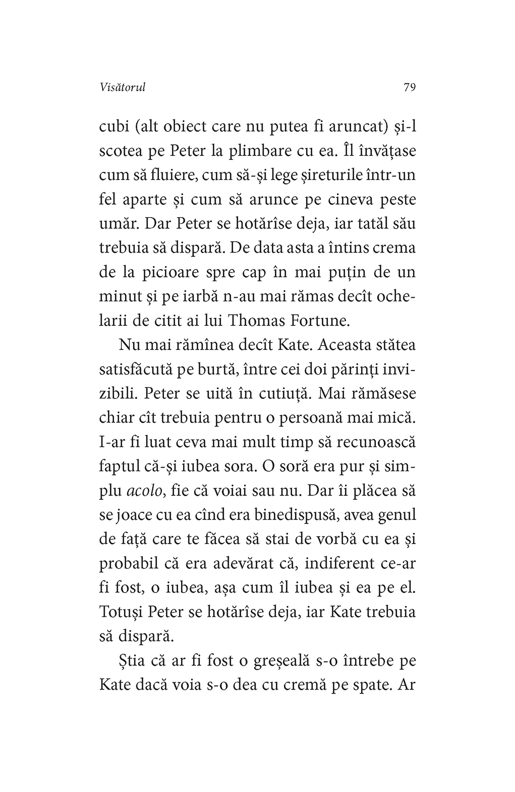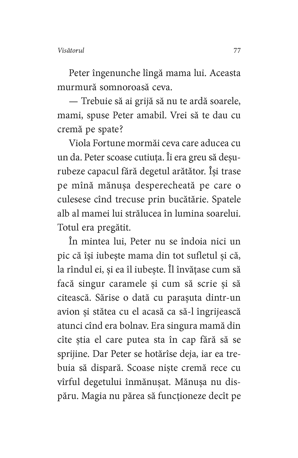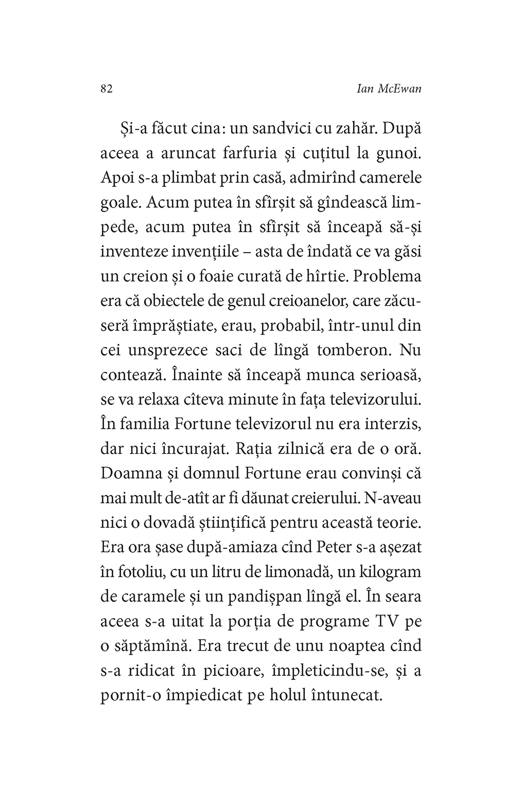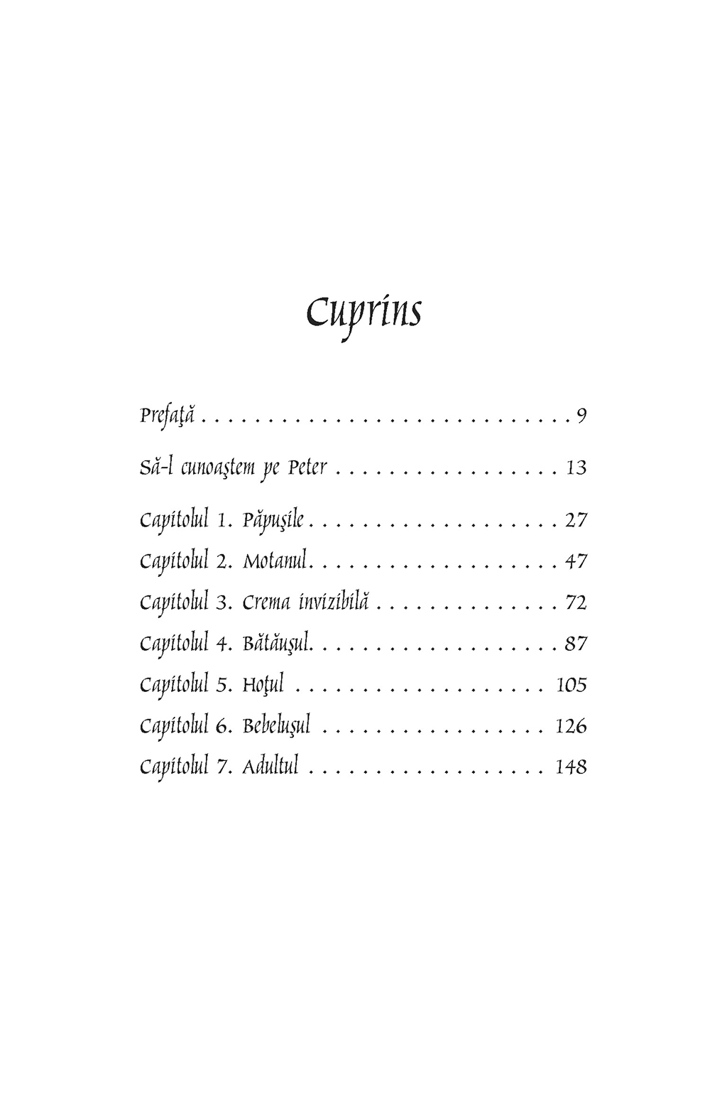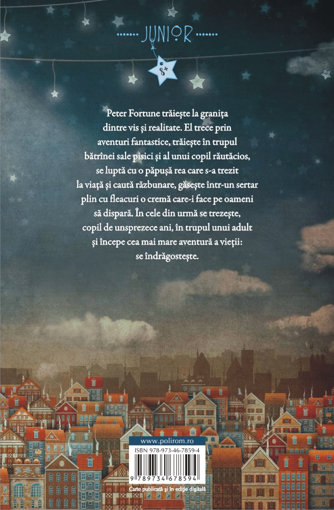 Peter Fortune trăiește la graniţa dintre vis și realitate. El trece prin aventuri fantastice, trăiește în trupul bătrînei sale pisici și al unui copil răutăcios, se luptă cu o păpușă rea care s-a trezit la viaţă și caută răzbunare, găsește într-un sertar plin cu fleacuri o cremă care-i face pe oameni să dispară. În cele din urmă se trezește, copil de unsprezece ani, în trupul unui adult și începe cea mai mare aventură a vieţii: se îndrăgostește.