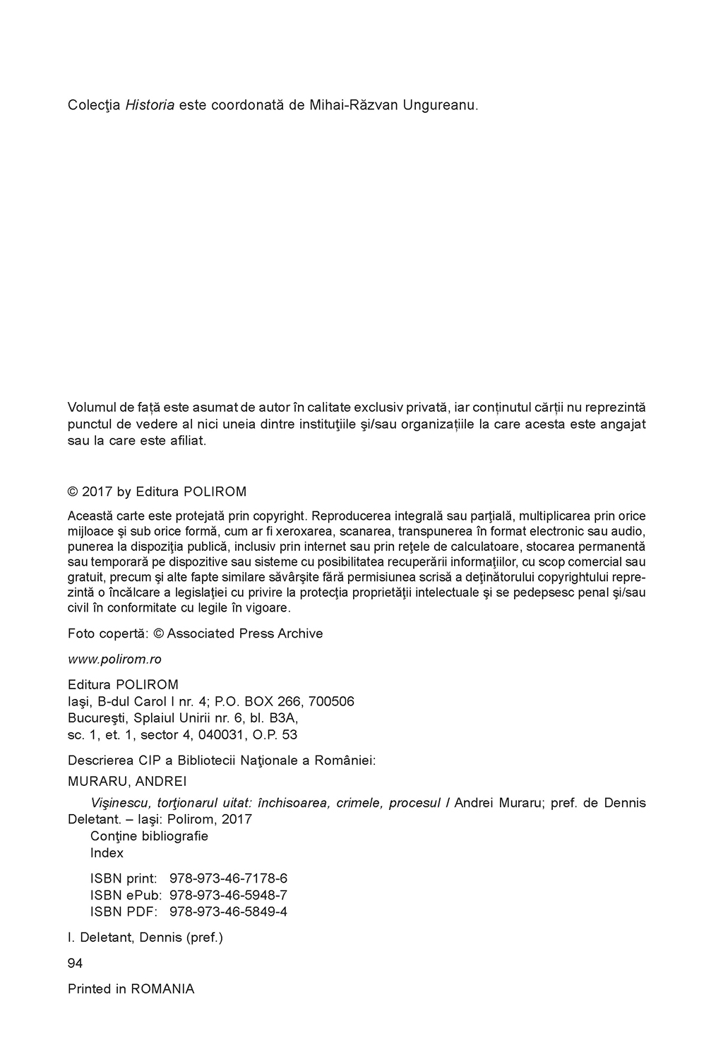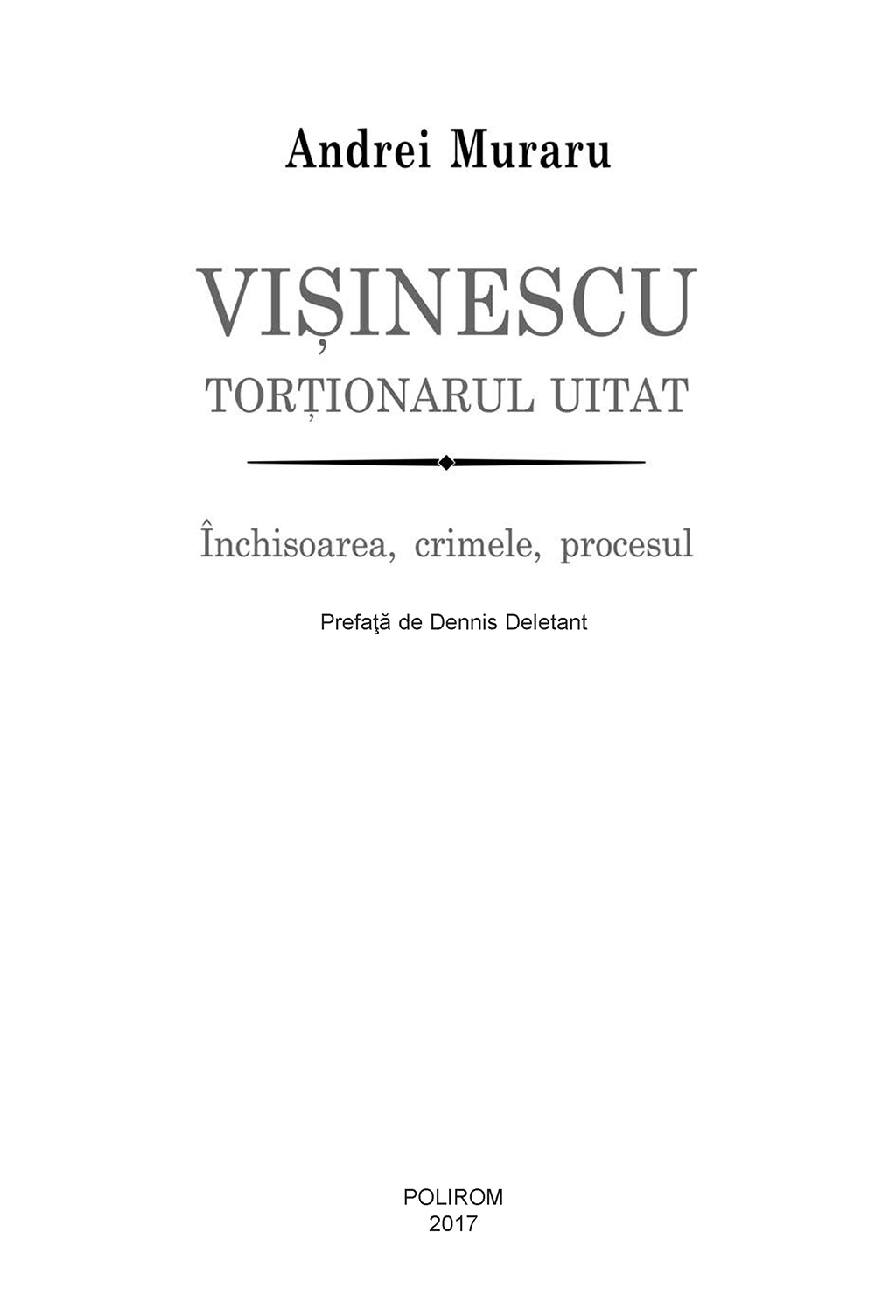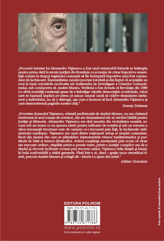 „Procesul intentat lui Alexandru Vişinescu a fost unul remarcabil întrucît se întîmpla pentru prima dată în istoria justiţiei din România ca acuzaţia de crime împotriva umanităţii comise în timpul regimului comunist să fie îndreptată împotriva unui fost comandant de închisoare. Însemnătatea cazului provine totodată şi din faptul că acuzaţiile au avut la bază cercetările neobosite ale Institutului de Investigare a Crimelor Comunismului, sub conducerea dr. Andrei Muraru. Verdictul a fost dovada că Revoluţia din 1989 i-a oferit societăţii româneşti şansa de a îmbrăţişa valorile democraţiei occidentale, valori care se bazează implicit pe ideea că natura umană caută să cultive demnitatea intrinsecă a individului, nu să o distrugă, aşa cum a încercat să facă Alexandru Vişinescu şi cum demonstrează paginile acestei cărţi.” (Dennis Deletant)