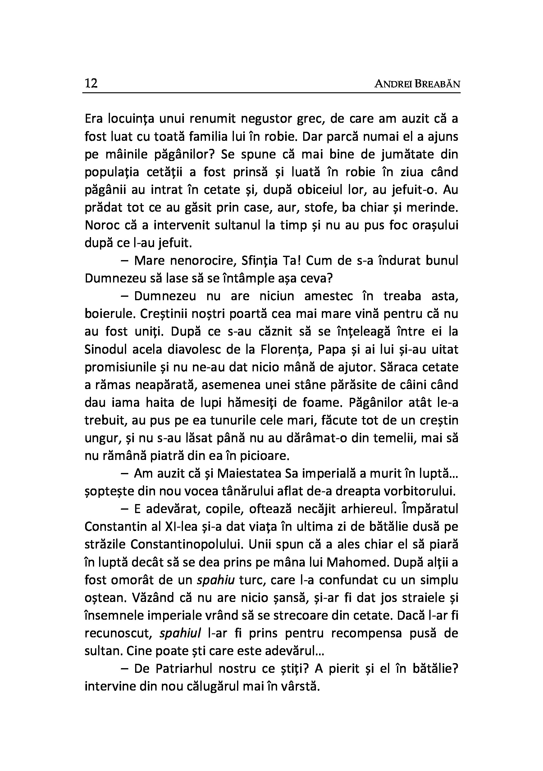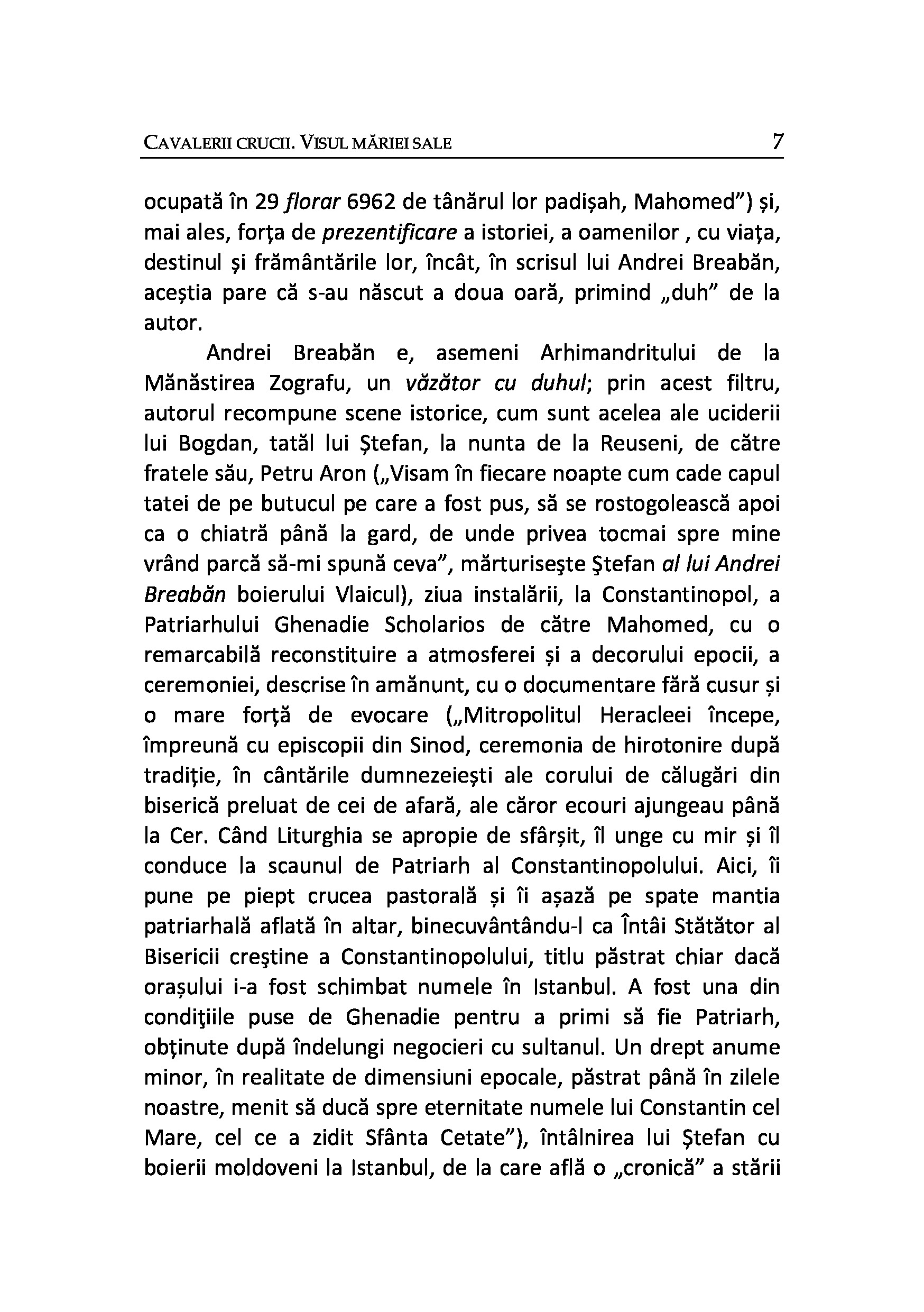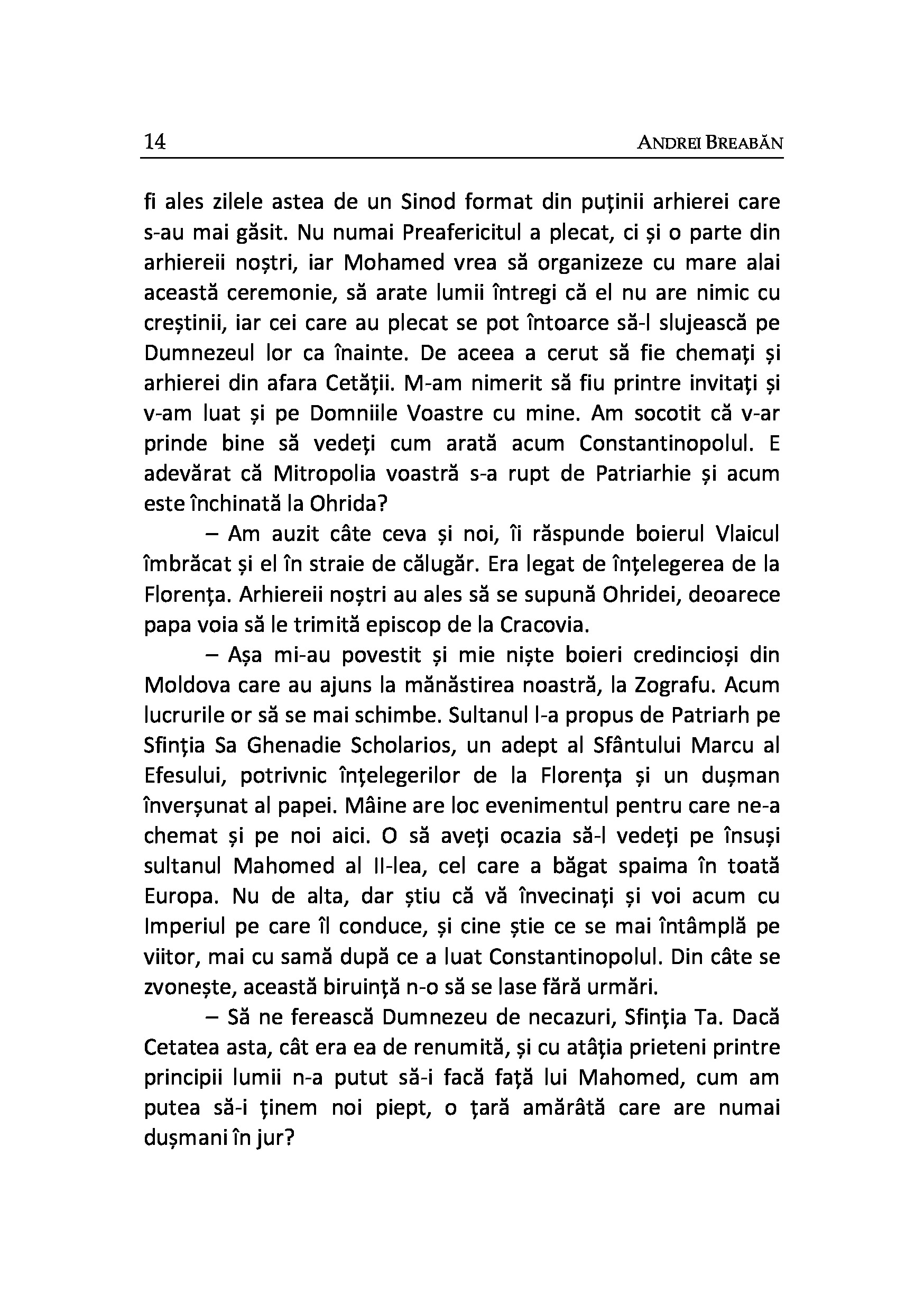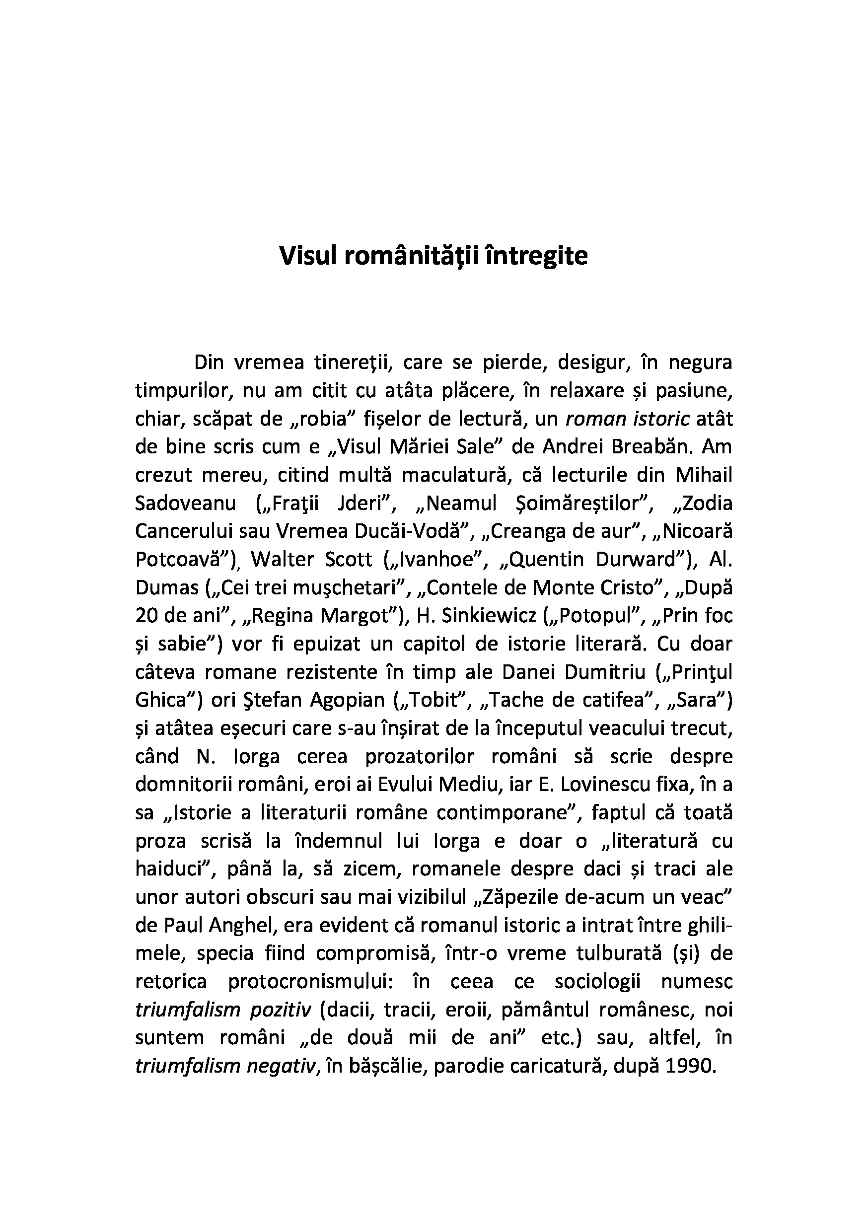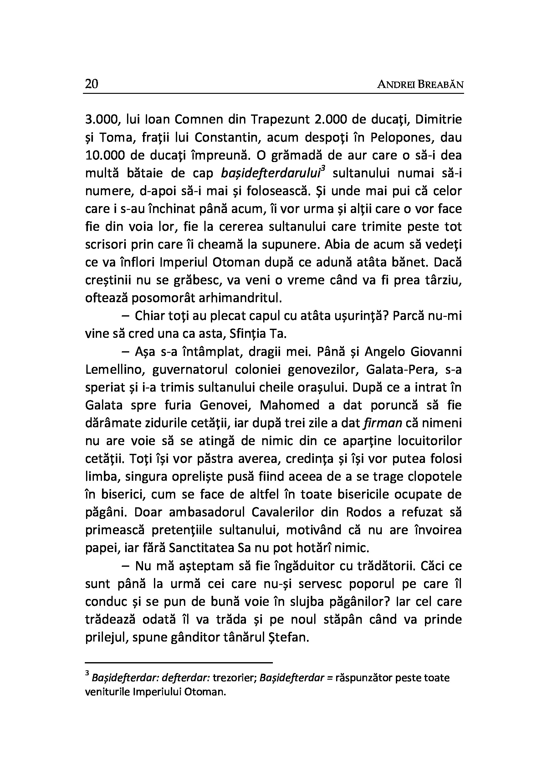 Andrei Breaban nu reconstituie si nici nu descrie in cartea sa, ci, cu spusa lui Gala Galaction, recheama trecutul; Cetatea Alba, unul dintre cele mai mari porturi la Marea Neagra dupa Caffa, unde "tatari, genovezi, venetieni, traci, greci, armeni, evrei si tot felul de alte neamuri traiau in buna intelegere cu moldovenii, care formau marea majoritate a orasului", Chilia, careia "cei din vechime" ii spuneau "Gura Lupului", spectacolul caravanelor de marfuri, de la Cetatea Alba spre Lvov, cum e aceea a lui Gica al lui Chioru, masa la un negustor din Kalamita, care "pune sa se taie in cinstea venirii lor doi porci si doi vitei de un an; dupa ce ii frige in curte, la jar, aduce la masa un vin rosu si gustos, proasp at scos de la zamnicele imp aratesti", tablouri impre-sionante de epoca, cum e acela al lui Iancu de Hunedoara langa Stefan al Moldovei desenate, in emotie autentica, bine strunita insa, dar, mai cu seama, portretele bine facute, pastrand detaliul psihologic si culoarea epocii, fiind un adevarat vehicul al acesteia: se retin, in aceasta ordine, portretele staretului de la Manastirea Zografu, al lui Vlad Drago, fratele de cruce al lui Stefan ori al Doamnei Oltea, mama lui Stefan cel Mare, venind, in proza lui Andrei Breaban, cu imaginea dintr-un celebru poem: Cetatea Neamtului e, aici, castelul lui Iancu de Hunedoara.