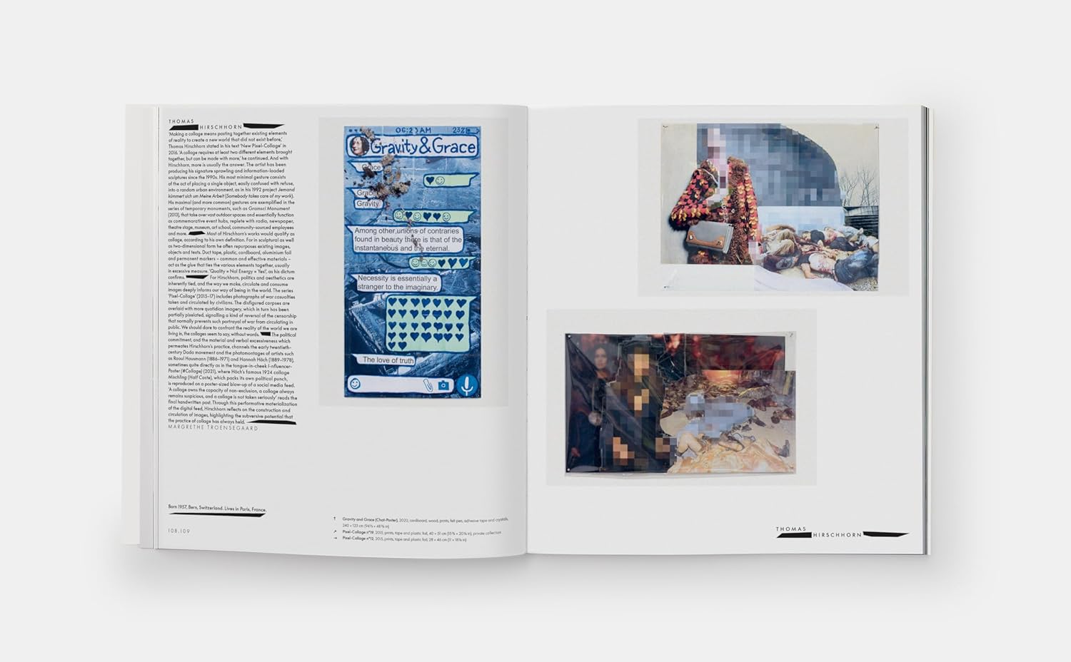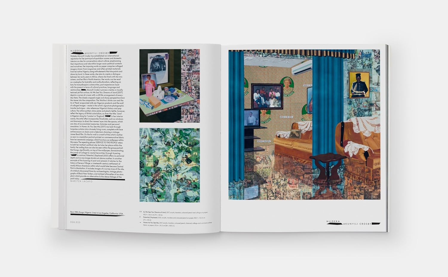 The 108 artists featured include: Njideka Akunyili Crosby; Kader Attia; Adam Broomberg; Sara Cwynar; Moyna Flannigan; Ellen Gallagher; Lauren Halsey; Lyle Ashton Harris; Thomas Hirschhorn; Peter Kennard; Justine Kurland; Linder; Christian Marclay; Wangechi Mutu; Frida Orupabo; Heather Philipson; Tabita Rezaire; Deborah Roberts; Martha Rosler; Dee Shapiro; Eva Stenram; John Stezaker; Mickalene Thomas; Kara Walker; and Billie Zangewa.