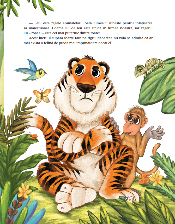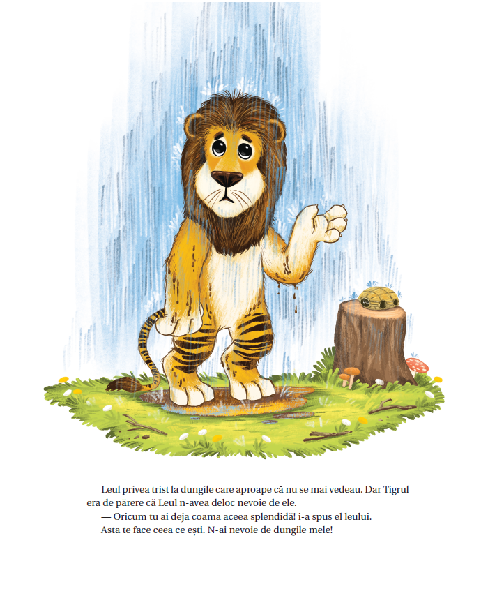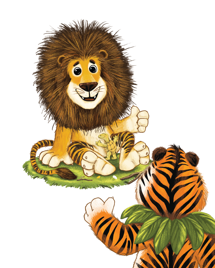 Tigrului i-ar plăcea să aibă o coamă la fel de maiestuoasă ca a Leului, iar Leului i-ar plăcea să aibă niște dungi impresionante, așa cum are Tigrul. Ei se străduiesc și reușesc să semene unul cu celălalt într-un mod amuzant.