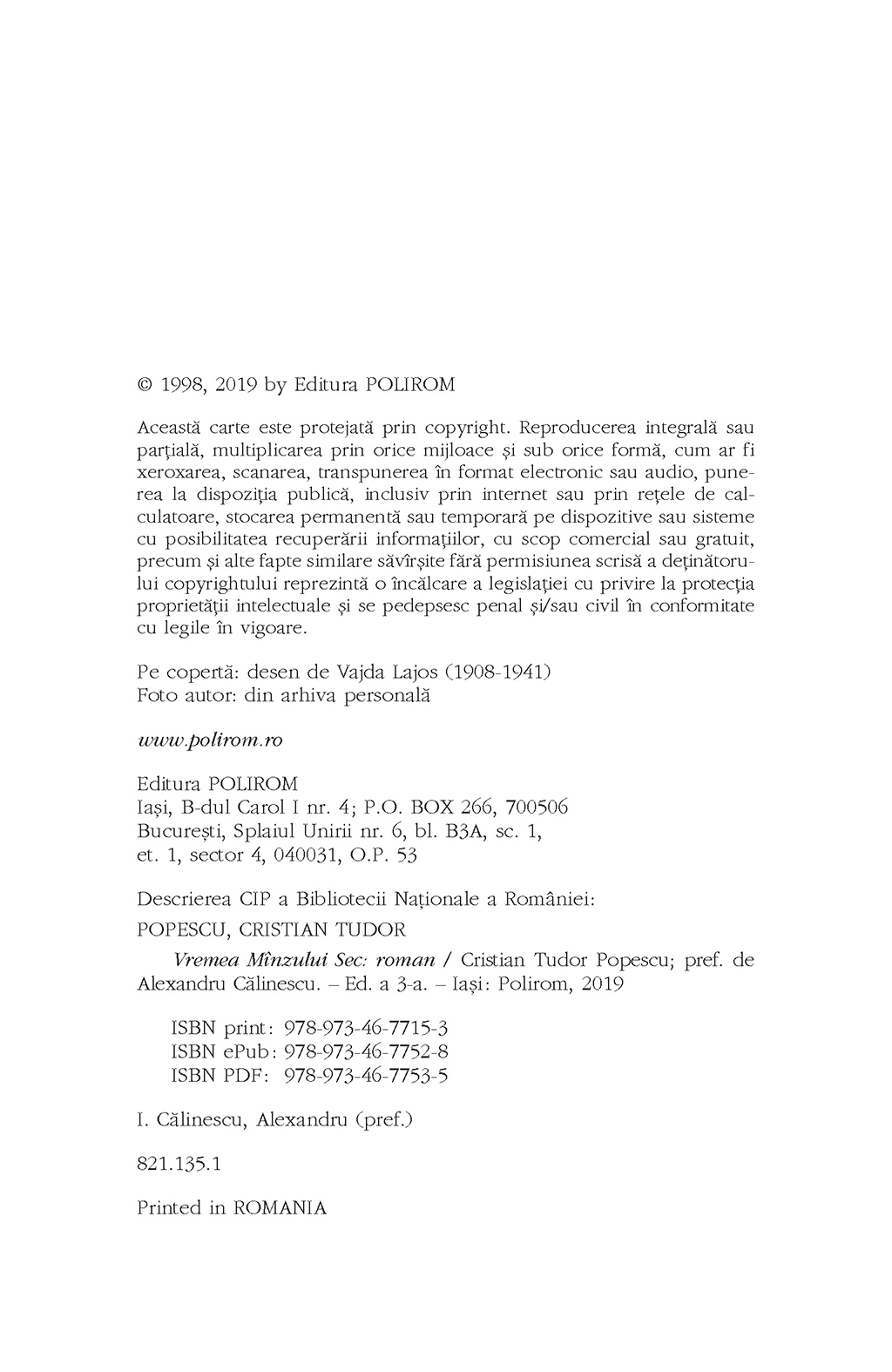 „Cristian Tudor Popescu este un Caragiale al timpului nostru care a mai citit, printre alții, pe Borges și pe Cioran. Literatura lui Cristian Tudor Popescu este o literatură document și va rămîne, așa cum, în ciuda temerilor unor critici, între care și marele E. Lovinescu, au rămas schițele, foarte la zi, ale lui Caragiale.” (Ion Rotaru – O istorie a literaturii române de la origini pînă în prezent)