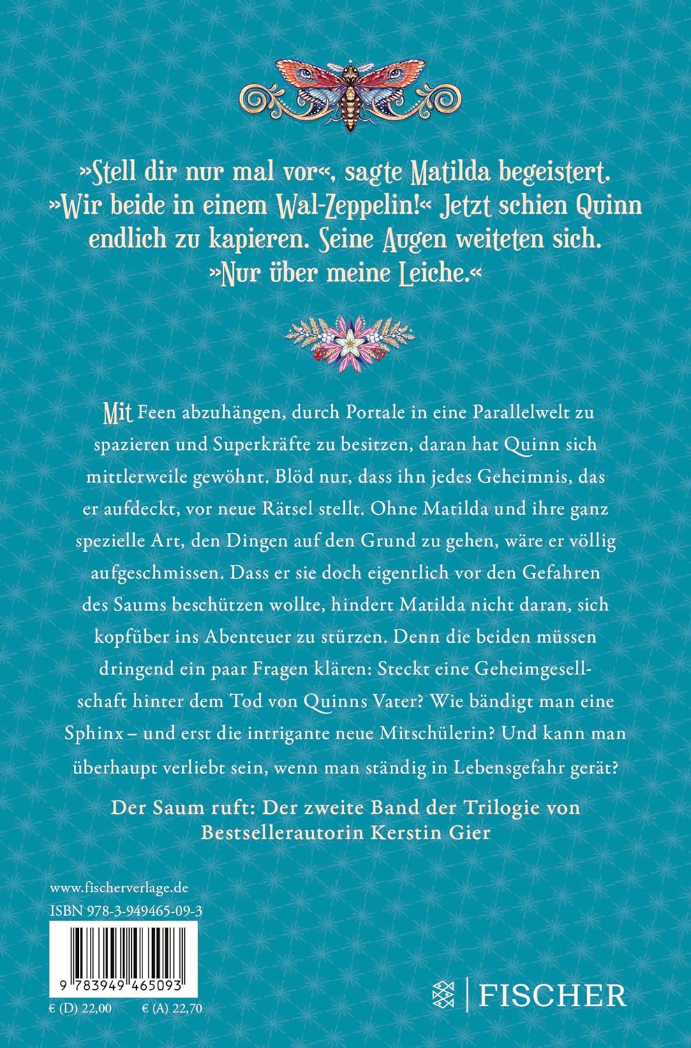 Mit Feen abzuhängen, durch Portale in eine Parallelwelt zu spazieren und Superkräfte zu besitzen, daran hat Quinn sich mittlerweile gewöhnt. Blöd nur, dass ihn jedes Geheimnis, das er aufdeckt, vor neue Rätsel stellt. Ohne Matilda und ihre ganz spezielle Art, den Dingen auf den Grund zu gehen, wäre er völlig aufgeschmissen. Dass er sie doch eigentlich vor den Gefahren des Saums beschützen wollte, hindert Matilda nicht daran, sich kopfüber ins Abenteuer zu stürzen.