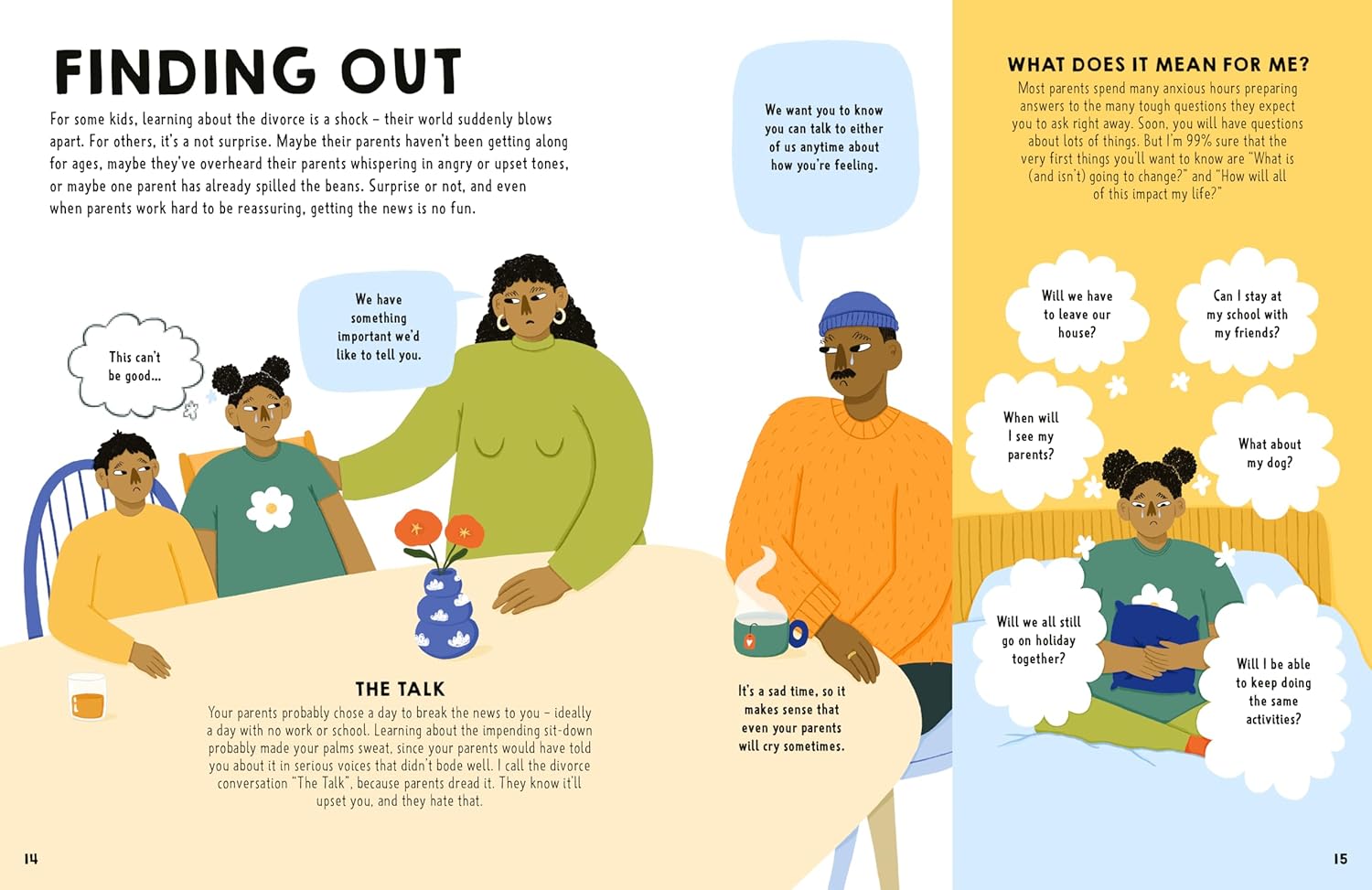 Children of separating or divorcing parents often feel alone and alienated, as though no one understands what they're going through. They need reassurance that their feelings are normal, and age-appropriate answers to their many questions. But divorce is confusing and overwhelming - thinking and talking about it are hard, for kids and grown-ups alike.