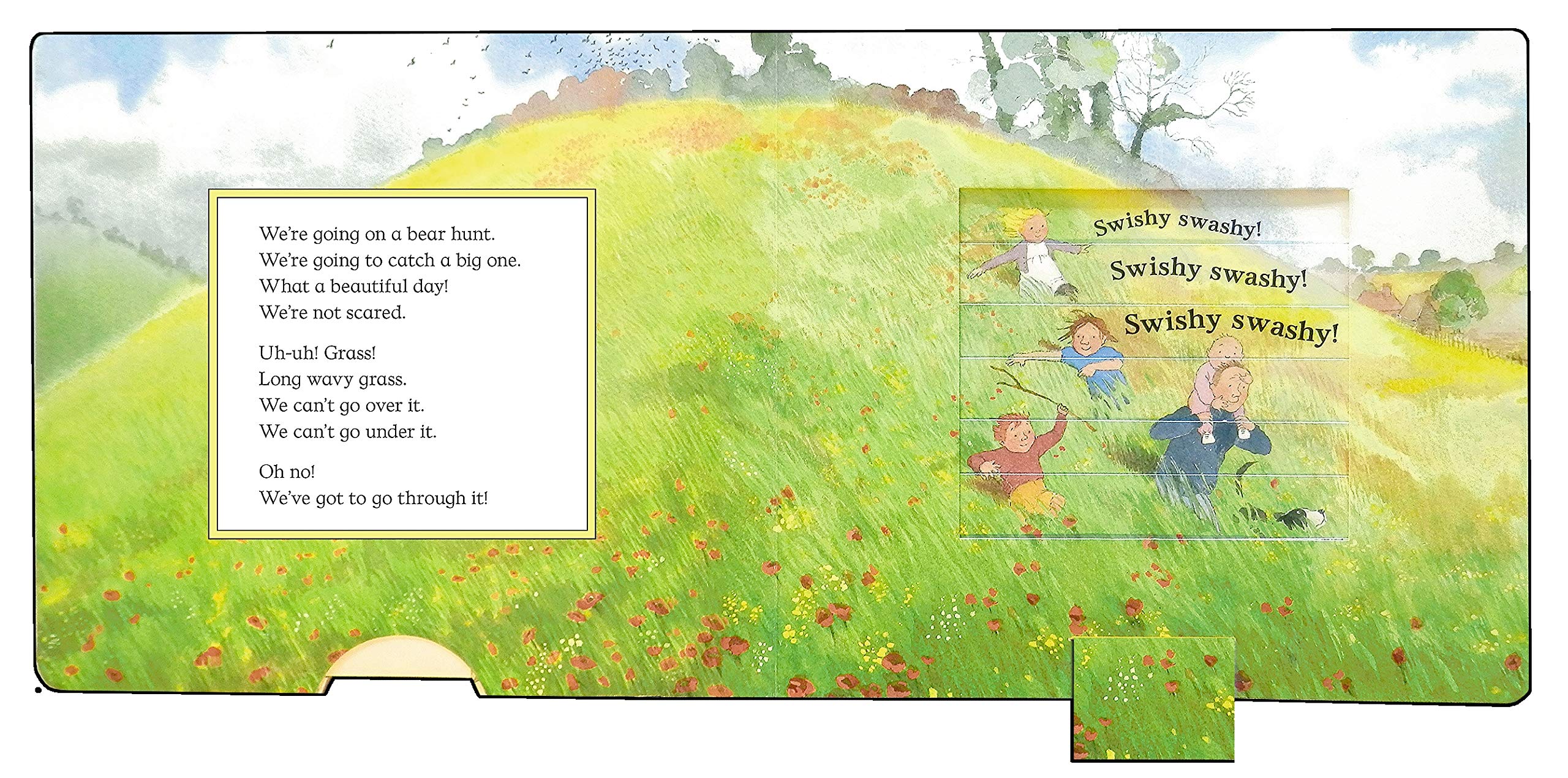 We're going on a bear hunt. We're going to catch a big one. Will you come too? For over twenty-five years, readers have been swishy swashing and splash sploshing through this award-winning favourite. Follow and join in the family's excitement as they wade through the grass, splash through the river and squelch through the mud in search of a bear. What a surprise awaits them in the cave on the other side of the dark forest! Now you can join in the fun with this interactive changing picture book.