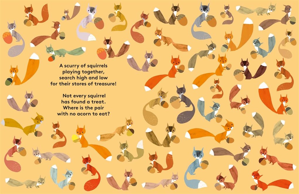Which pair of fish are heading in the wrong direction? Which two squirrels have lost their acorns? Can you spot the pair of dogs that are the same breed? Dazzlingly designed by award-winning illustrator Britta Teckentrup, this interactive search-and-find book encourages young readers to test their visual acuity and find the pair.