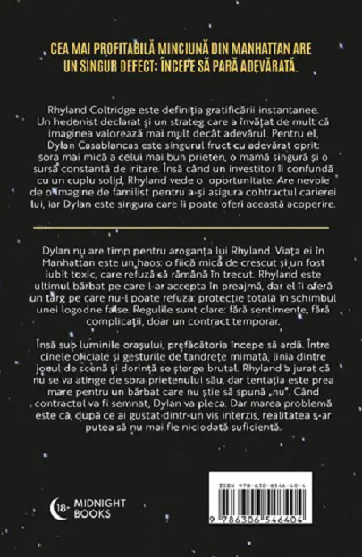 Rhyland Coltridge are nevoie de o soție, iar Dylan Casablancas are nevoie de un viitor stabil. Alianța lor reprezintă o tranzacție de lux desfășurată în cele mai exclusiviste cercuri ale Manhattan-ului, transformând acest pact rece în cel mai periculos joc al seducției.