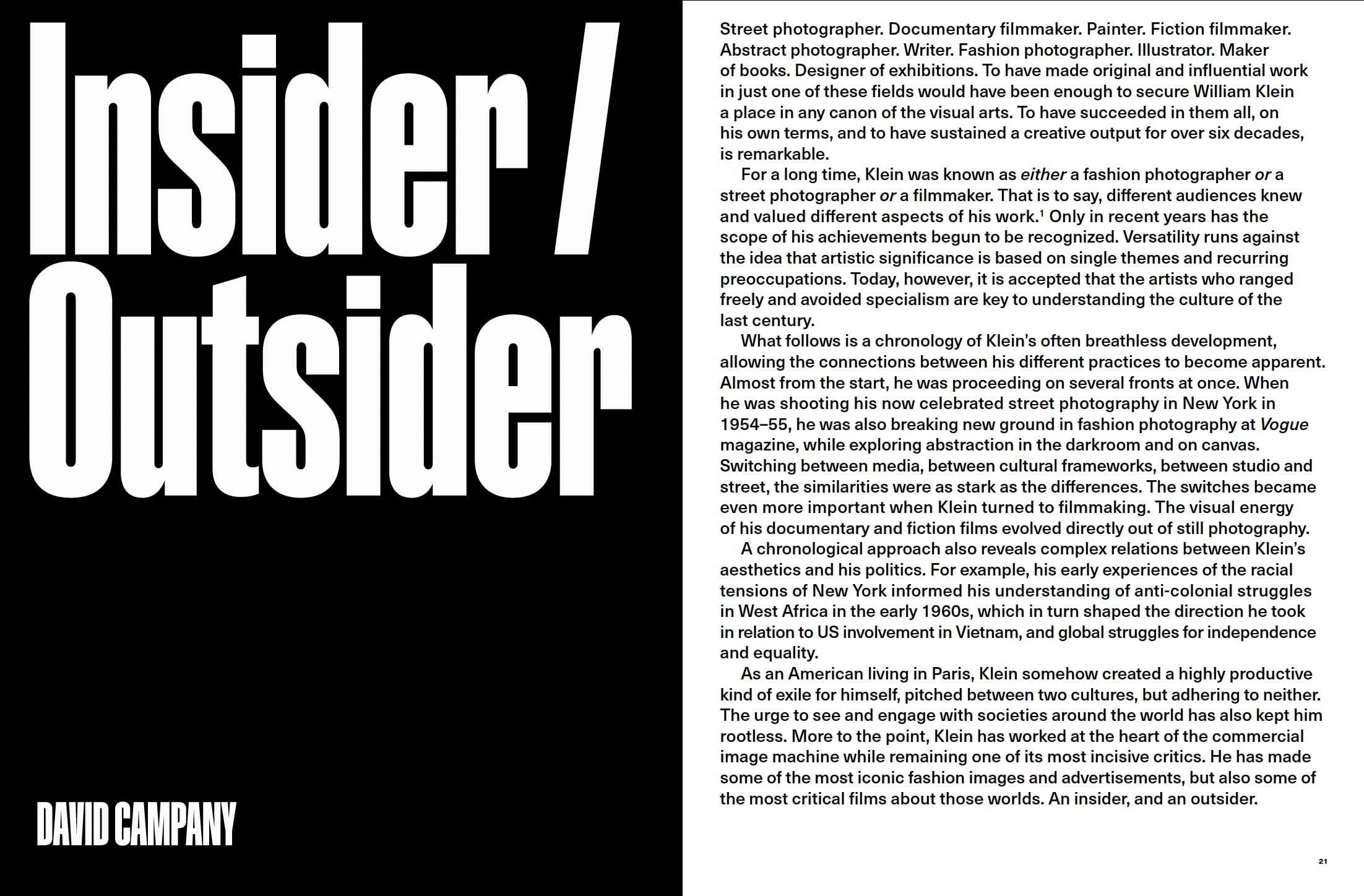 The last book completed by William Klein within his lifetime: A landmark retrospective encompassing Klein's legacy of creativity across photography, filmmaking, painting, book design, graphic design and beyond.