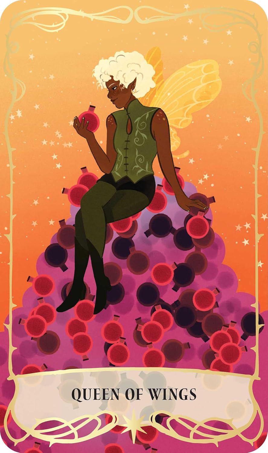 Adorned with dazzling, full-color illustrations, this deck’s rich imagery draws on the archetypal dragons, fae, witches, and more, each card offering new ways to interpret your own world and the possible outcomes of your choices.