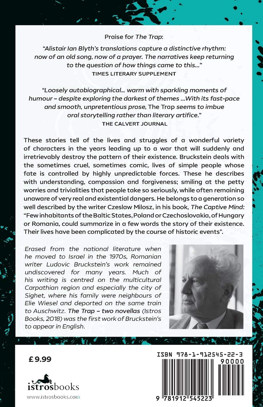 The stories in this collection are stories of the lives and struggles of a wonderful variety of characters living in the Maramures region, in the years leading up to a war that will suddenly and irretrievably destroy the pattern of their existence. The eerily shocking ending of many of these stories is the moment their protagonists climb on the cattle trains to be transported to Auschwitz; while leaving the tale of their often tragic fate unstated. Bruckstein's works, novels, stories and plays, deal with the sometimes cruel, sometimes comic, lives of simple people whose fate is controlled by highly unpredictable forces. These he describes with understanding, compassion and forgiveness; smiling at the petty worries and trivialities that people take so seriously, while often remaining unaware of very real and existential dangers. He belongs to a generation so well described by the writer Czeslaw Milosz, in his book, The Captive Mind: Few inhabitants of the Baltic States, Poland or Czechoslovakia, of Hungary or Romania, could summarize in a few words the story of their existence. Their lives have been complicated by the course of historic events.