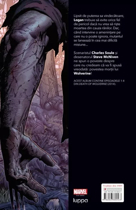 Scenaristul Charles Soule și desenatorul Steve McNiven ne spun o poveste despre care nu credeam că va fi spusă vreodată: povestea morții lui Wolverine!