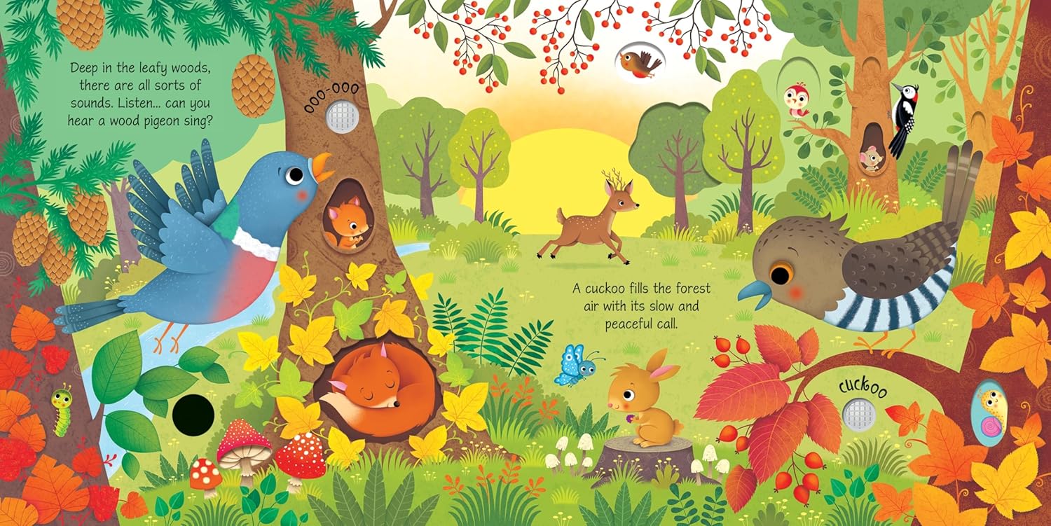 Little children will love hearing the woods come to life as they press the pages of this enchanting book, and hear cuckoos and woodpeckers, rustling leaves and rippling streams.