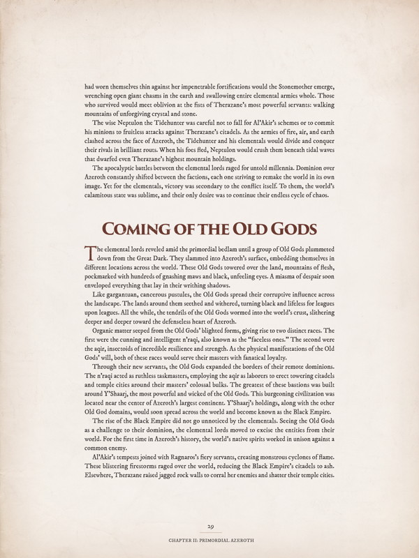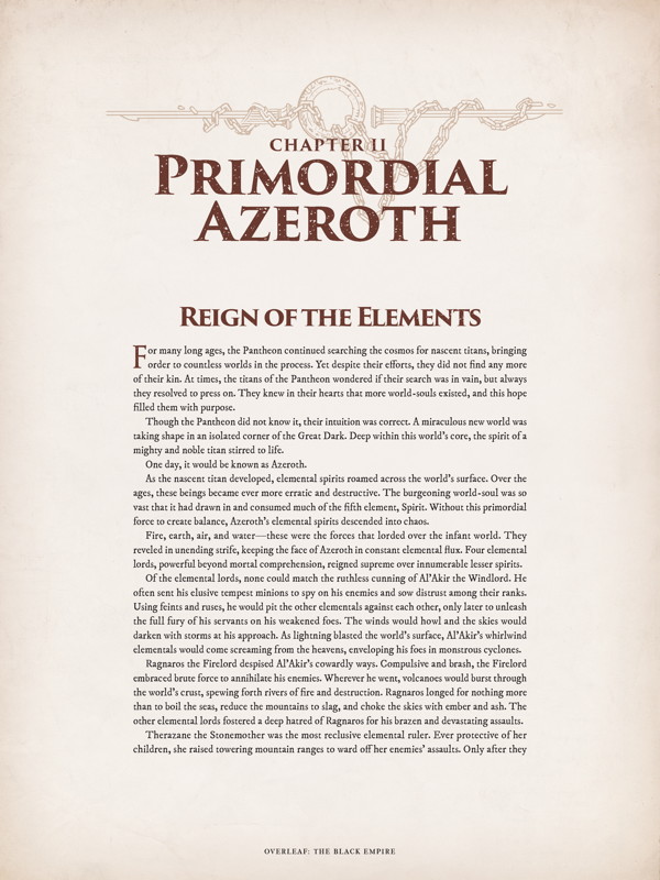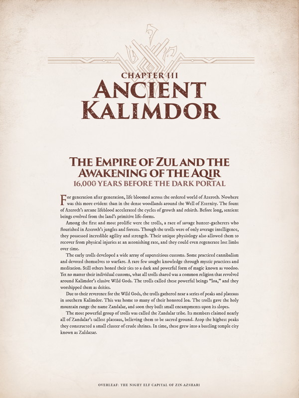Journey through an age of myth and legend, long before the Horde and the Alliance. This definitive tome reveals untold stories about the birth of the cosmos, the rise of ancient empires, and the forces that shaped Azeroth. Featuring original art, this is the first in a multipart series exploring the rich lore of the Warcraft universe, from the distant past to the modern era.