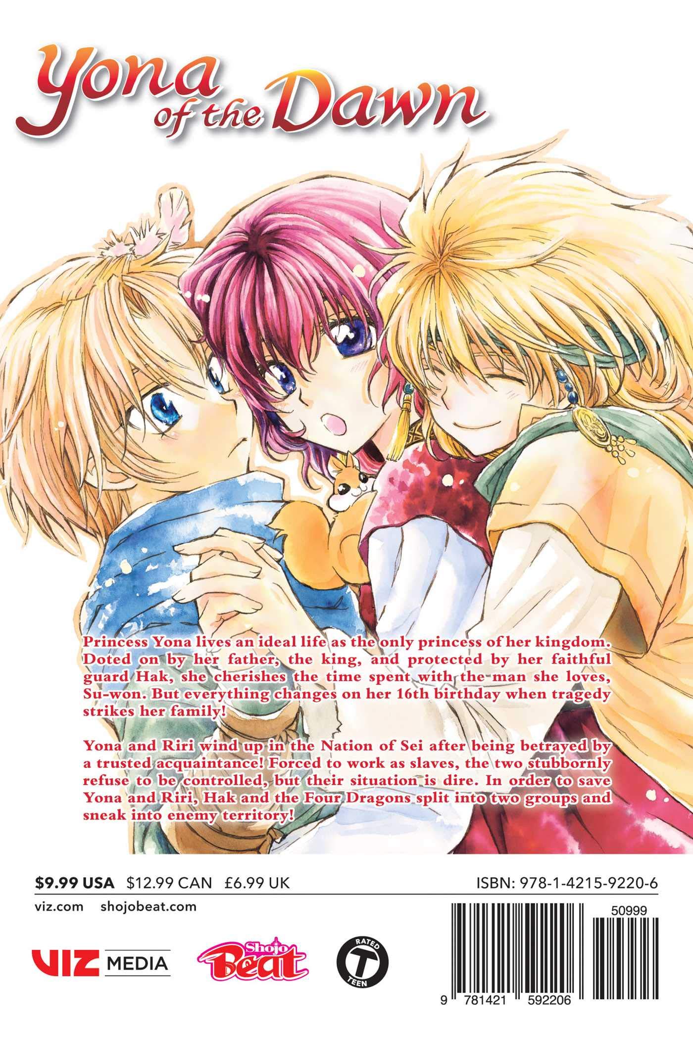 Yona and Riri wind up in the nation of Sei after being betrayed by a trusted acquaintance! Forced to work as slaves, the two stubbornly refuse to be controlled, but their situation is dire. In order to save Yona and Riri, Hak and the Four Dragons split into two groups and sneak into enemy territory!
