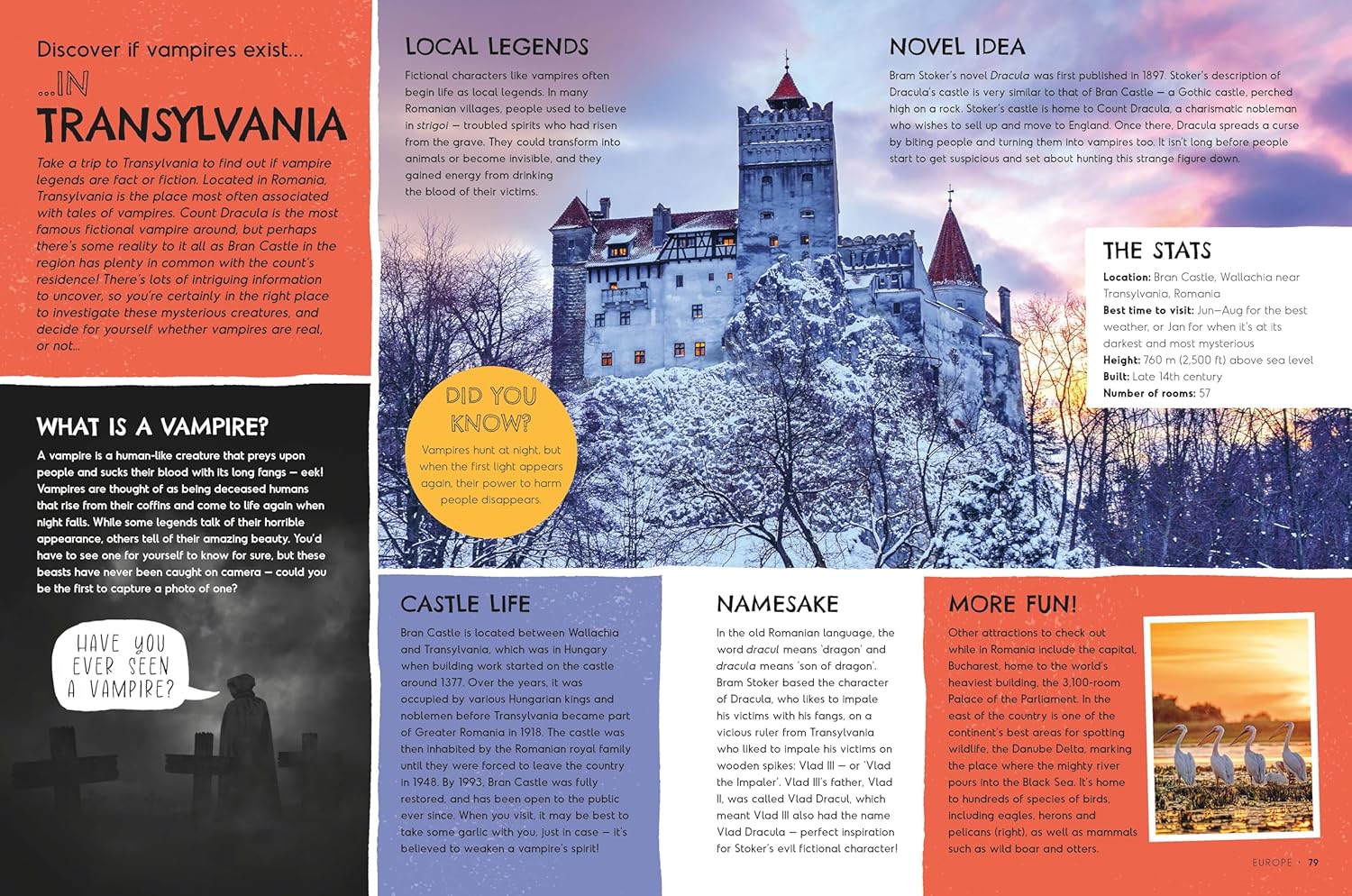 Discover creepy vampire legends in Transylvania; visit the world's largest toy shop in London; eat a futuristic meal at a robot restaurant in China! This must-read book for budding globetrotters is packed with brain-busting knowledge, facts, and photos, to encourage an even greater love for our awesome planet.