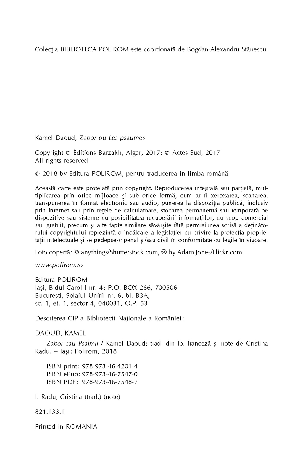 „Noul roman al lui Kamel Daoud, Zabor sau Psalmii, este o perlă în deşert, o fabulă, o poveste încărcată de magie şi poezie.” (Le Journal du Dimanche)