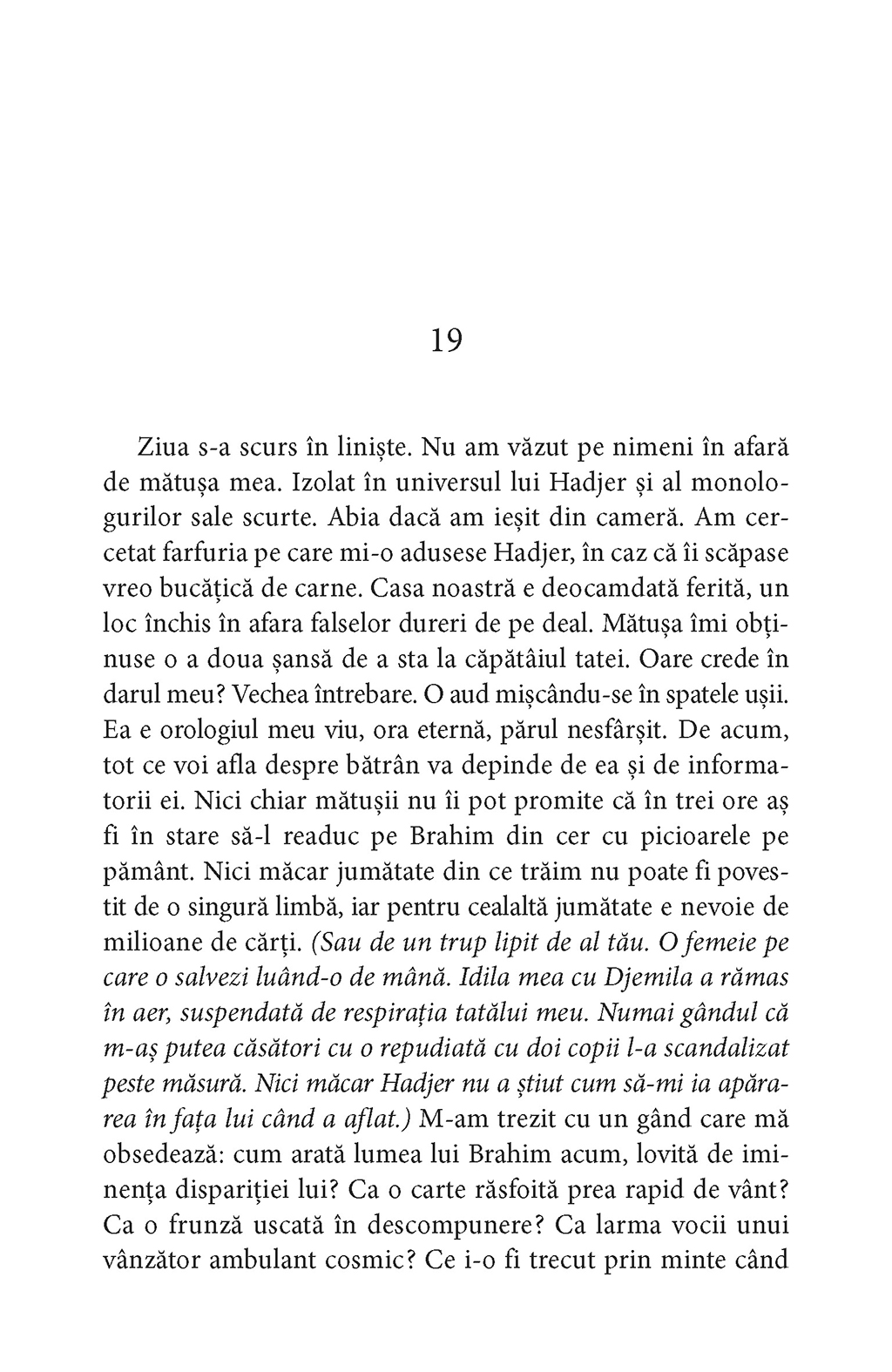 „O fabulă în acelaşi timp febrilă şi senzuală despre puterea cărţilor în faţa morţii. Un roman extrem de autobiografic unde regăsim tot ceea ce îl obsedează pe scriitorul algerian şi contribuie la geniul lui creator: dragostea pentru pămîntul Algeriei şi repulsia faţă de religia care îndobitoceşte; femeile închise de bărbaţi; trupurile respinse, izolate, ascunse; impulsul sexual care generează frustrare şi violenţă cînd este înăbuşit sau eliberare şi extaz cînd se vede neîngrădit; excluderea, proscrierea, chiar exilul în propria ţară.” (Libération)