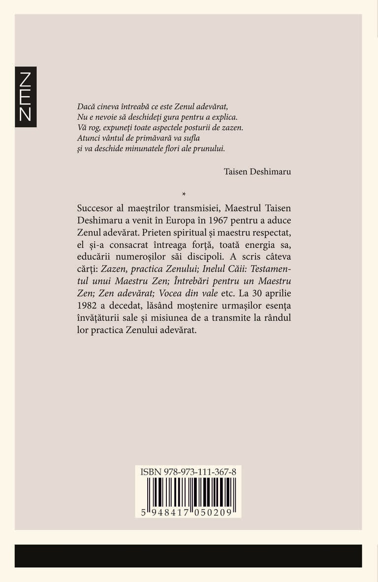 „Invatatura cuprinsa in aceasta carte este primordiala, sta la baza practicii zazen autentice; este foarte important sa intelegeti metoda veritabila pentru a practica un zazen corect. Toata lumea intelege ce postura trebuie sa aiba si ce respiratie trebuie sa practice; am explicat aceste lucruri deseori pe larg. Insa cum gandim? Cum ne controlam mintea, constiinta in timpul zazenului?