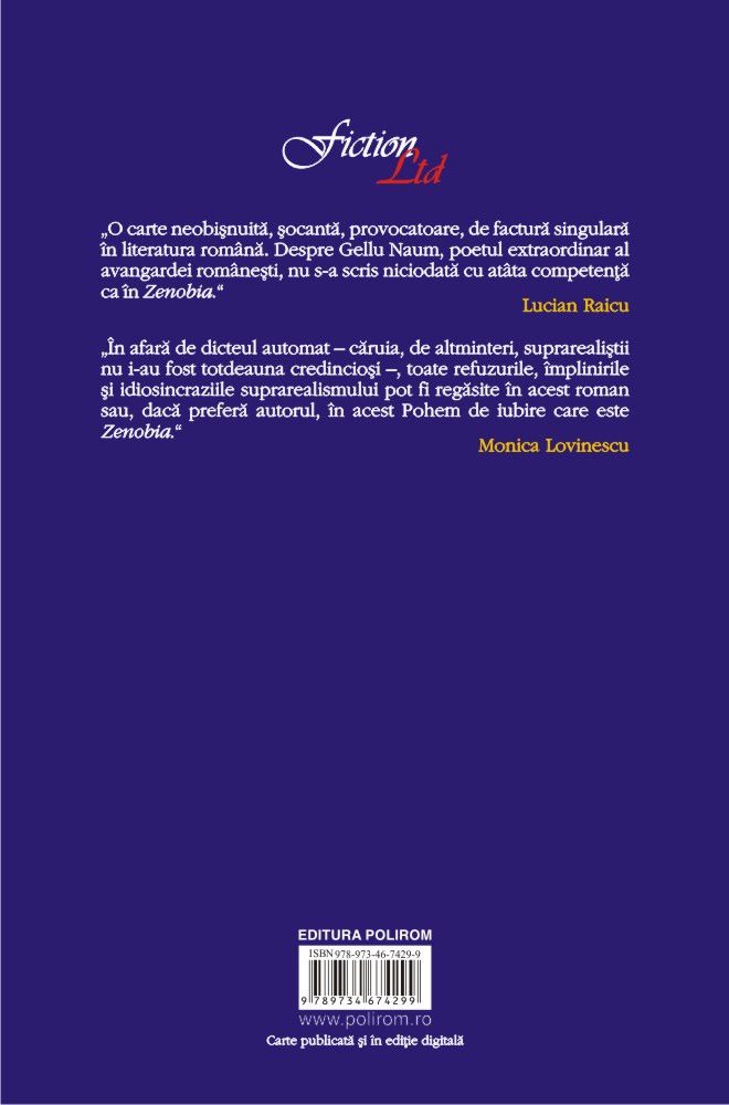 „O carte neobişnuită, şocantă, provocatoare, de factură singulară în literatura română. Despre Gellu Naum, poetul extraordinar al avangardei româneşti, nu s-a scris niciodată cu atîta competenţă ca în Zenobia.” (Lucian Raicu)