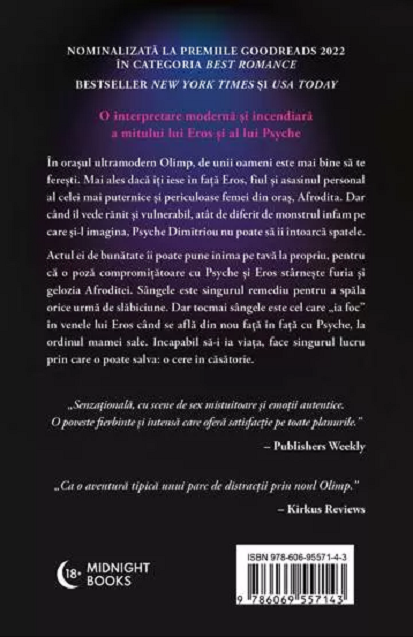 În orașul ultramodern Olimp, de unii oameni este mai bine să te ferești. Mai ales dacă îți iese în față Eros, fiul și asasinul personal al celei mai puternice și periculoase femei din oraș, Afrodita. Dar când îl vede rănit și vulnerabil, atât de diferit de monstrul infam pe care și-l imagina, Psyche Dimitriou nu poate să îi întoarcă spatele.