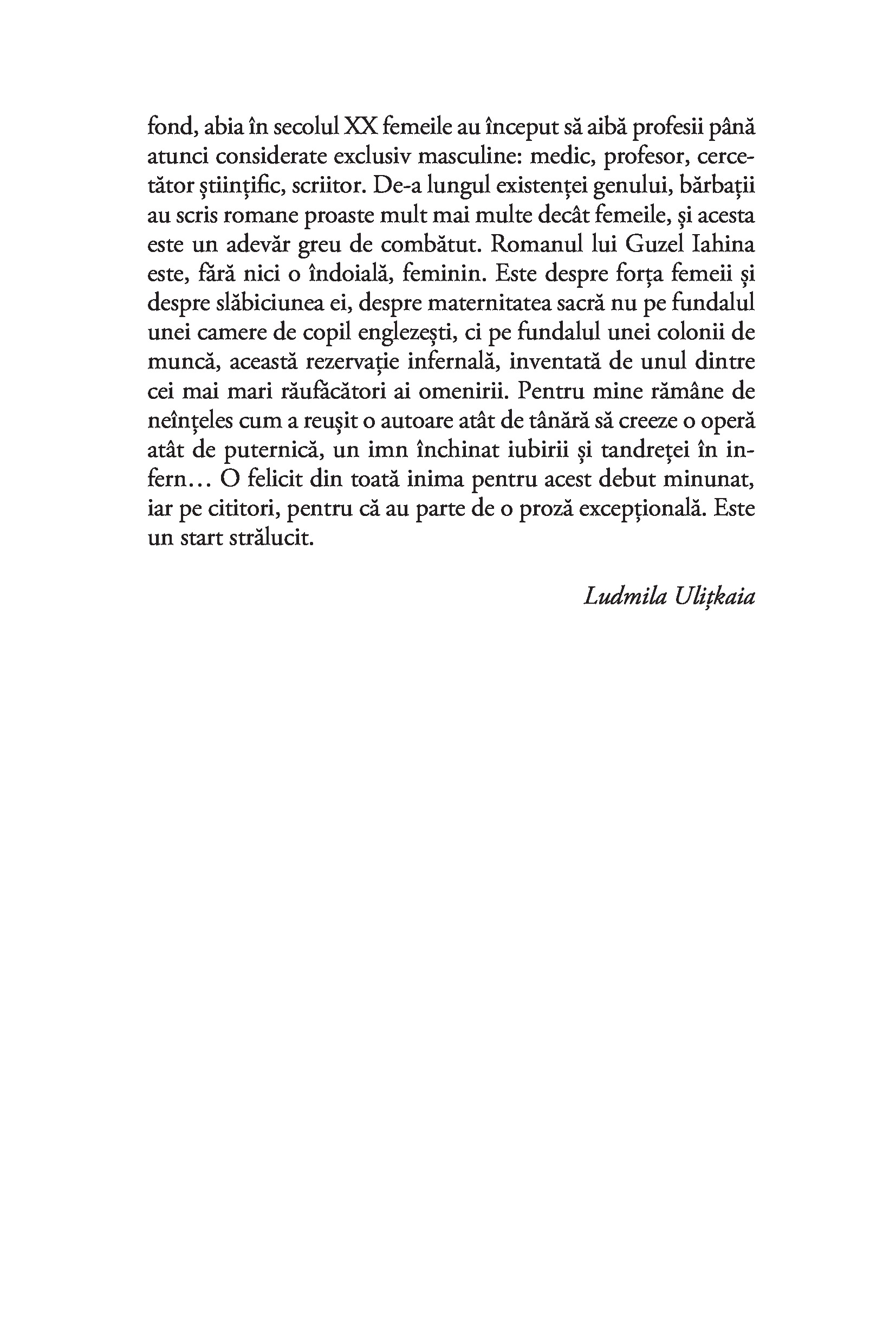 „Cea mai bună carte pe care am citit-o în ultima vreme. O carte foarte puternică, care aduce un suflu nou în literatura rusă." (Evgheni Vodolazkin)