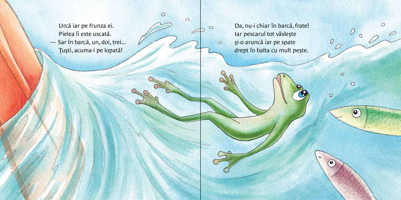Broscuța Zuzulina se uită cu jind, de pe frunza ei de nufăr, la bărcile care trec.