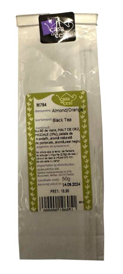 Bucati de mere, malt de orz, migdale, petale de trandafir, aroma naturala de portocale, aroma, ceai negru.