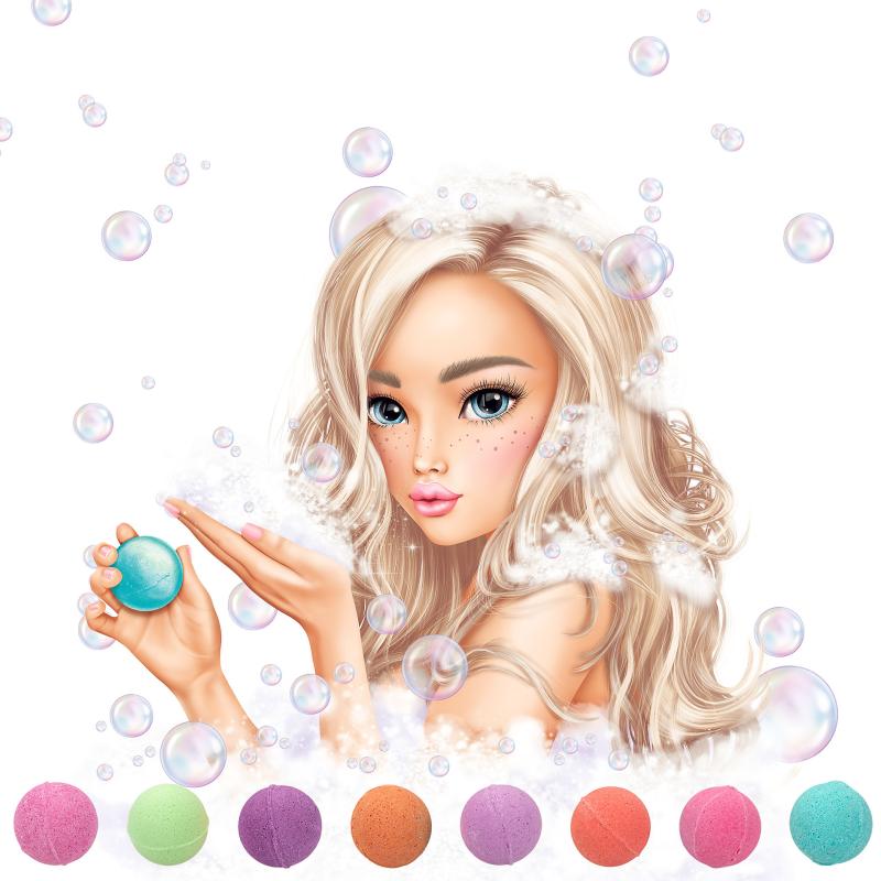 Cele 8 bombe colorate se dizolvă în apă și emană un miros grozav: cele roz miros a căpșune, cele violet a ananas, cele albastre și verzi miros a gumă de mestecat și cele de culoarea piersicii a vanilie. Nu sunt potrivite pentru copiii sub 3 ani.