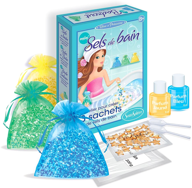 Acest mini laborator cosmetic și creativ oferă 3 matrițe mici, coloranți amestecabili și parfumați, împreună cu bicarbonat de sodiu și o bază acidă pentru a crea mini bombe de baie adorabile și colorate!