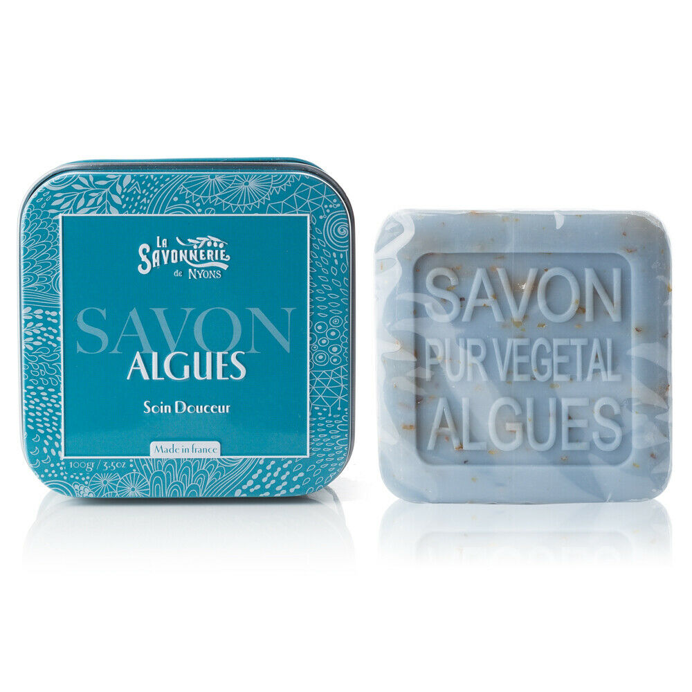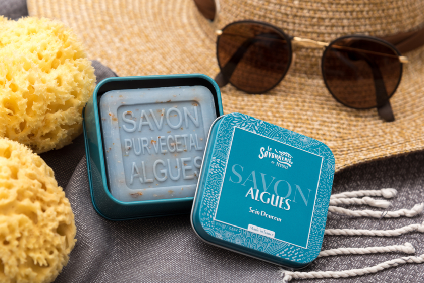 Acest săpun cu alge marine este îmbogățit cu unt de shea ORGANIC și ulei de măsline Nyons. Cele două ingrediente au proprietăți hidratante și conferă pielii suplețe.