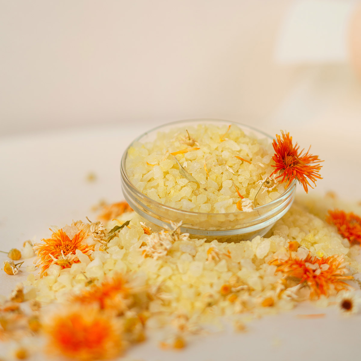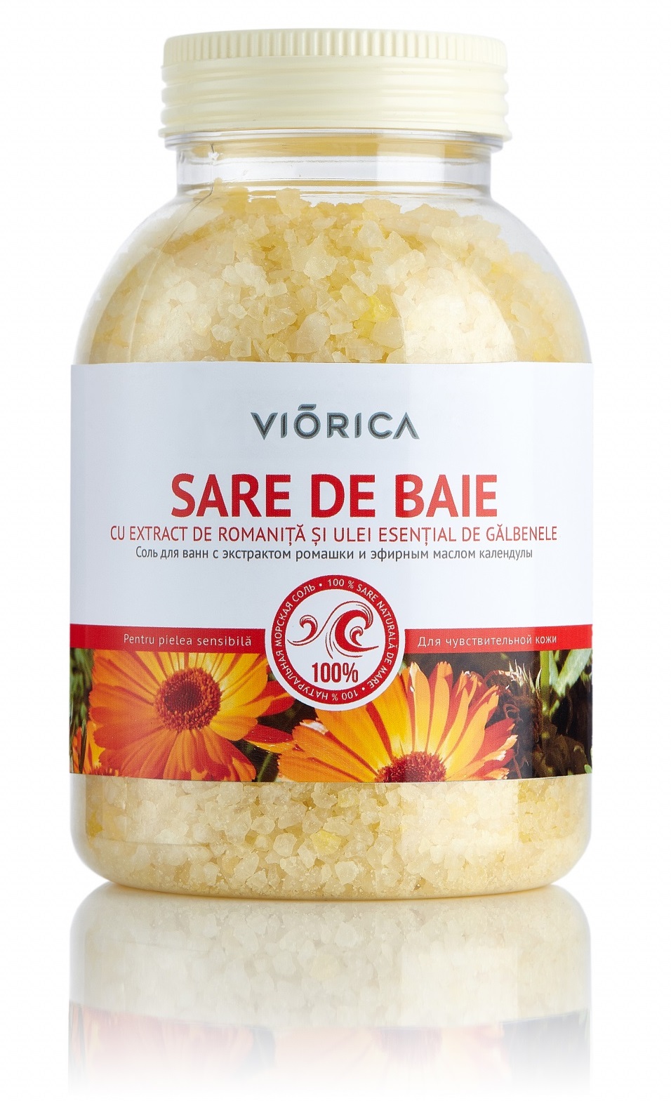 Sarea de mare, îmbogățită cu ulei esențial de gălbenele și extracte de romaniță și gălbenele, posedă acțiune regenerantă și calmantă, esențiale pentru pielea sensibilă. Recomandată pentru băi în scopuri profilactice și curative. Dacă pielea Dvs. este foarte sensibilă, ușor iritabilă și descuamată, sarea va fi pentru Dvs. o revelație: elimină iritabilitatea pielii, crește rezistența pielii contra factorilor nocivi a mediului. Sarea conține o concentrație mare de micro și macroelemente necesare funcționării normale a organismului: kaliu, natriu, calciu, magneziu, fier, ioni sulfați.