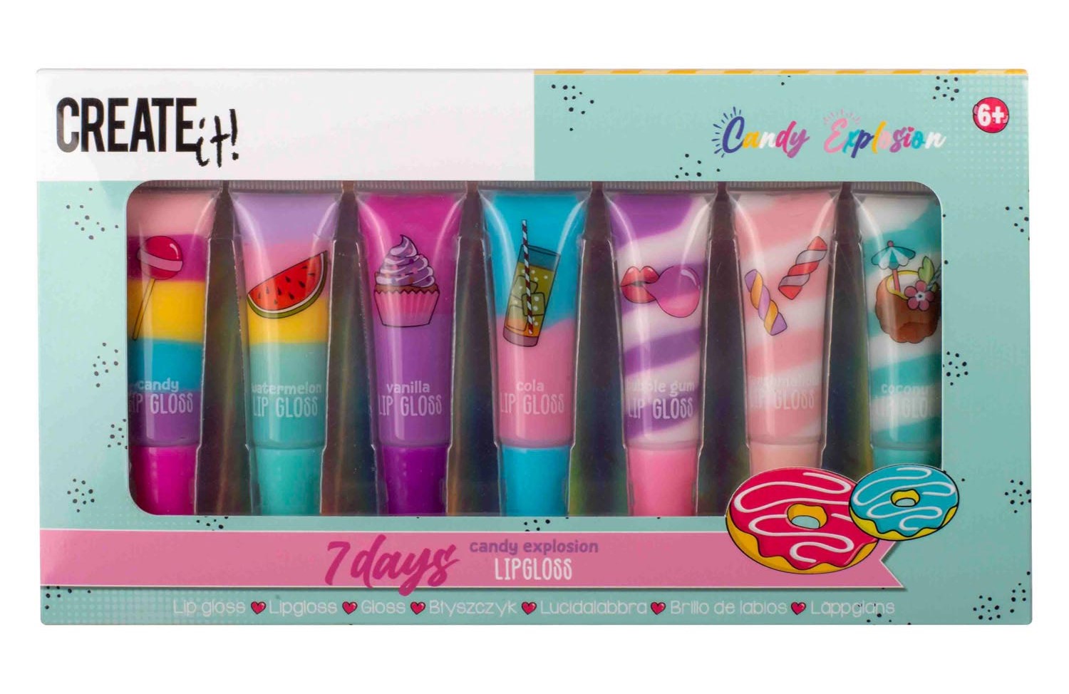 Acest set conține șapte luciuri de buze delicioase pentru fiecare zi a săptămânii cu următoarele arome: