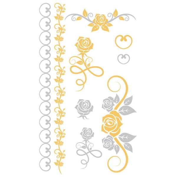 Tatuaje cu trandafiri, culori auriu si argintiu.