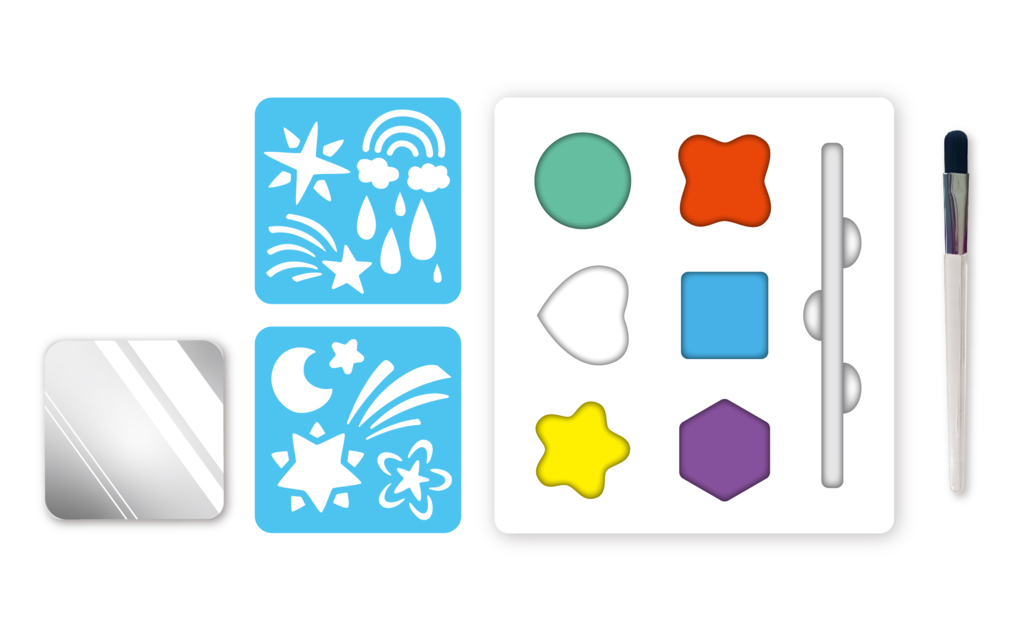 Acest set creativ este ideal pentru micii artiști care vor să își exprime imaginația și să creeze designuri uimitoare pe față, inspirate de frumusețea cerului.