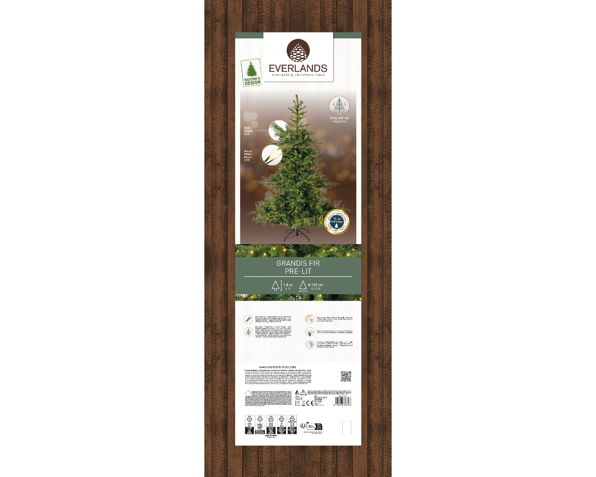 Bradul de Crăciun Everlands Grandis Pre-iluminat, cu o înălțime de 180 cm, este ideal pentru cei care apreciază un decor festiv tradițional, dar fără eforturi. Cu un diametru generos de 132 cm, acest brad este realizat dintr-o combinație de ace realiste și moi, oferind un aspect bogat și natural. Este dotat cu 56 de ramuri și un cablu verde care se camuflează perfect în frunzișul PE/PVC. Baza sa metalică solidă, cu un diametru de 45 cm, oferă stabilitate optimă.