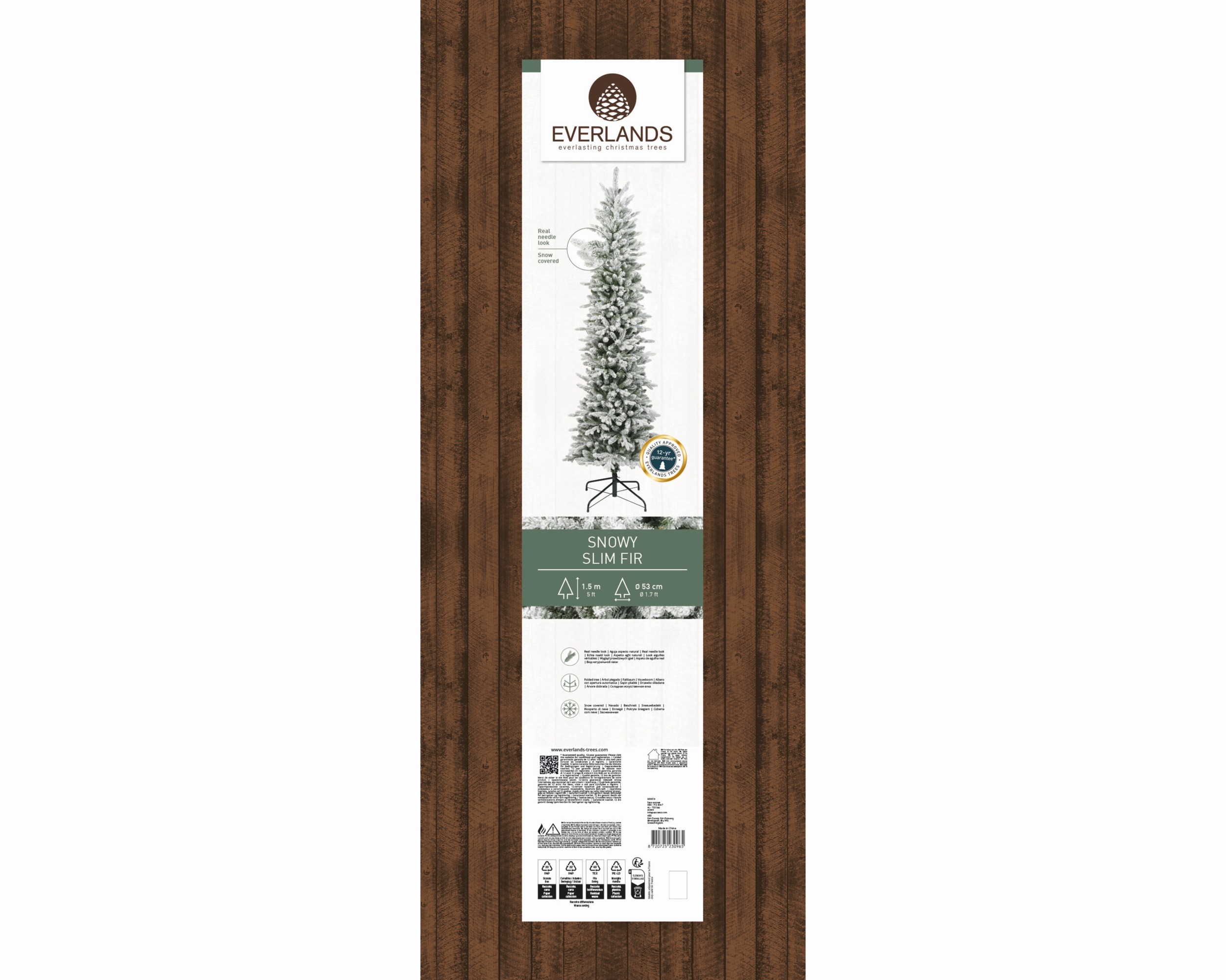 Brad artificial - Slim Fir Snowy - Green-White, înălțime 150 cm