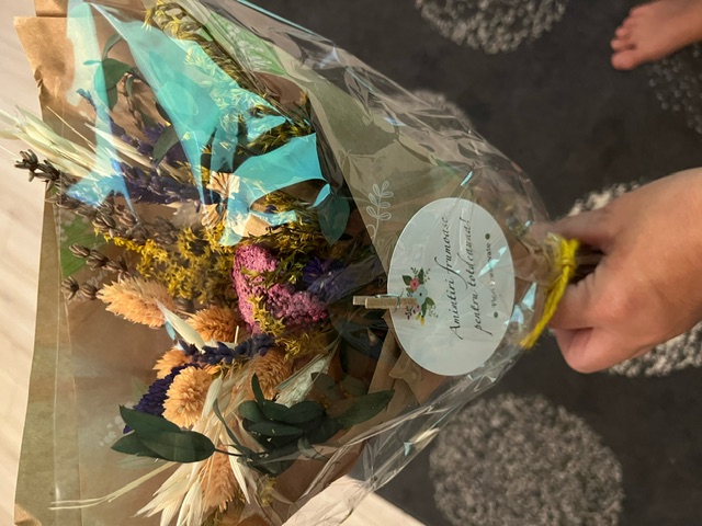 Daruieste un buchet cu flori uscate in soare puternic de vara.