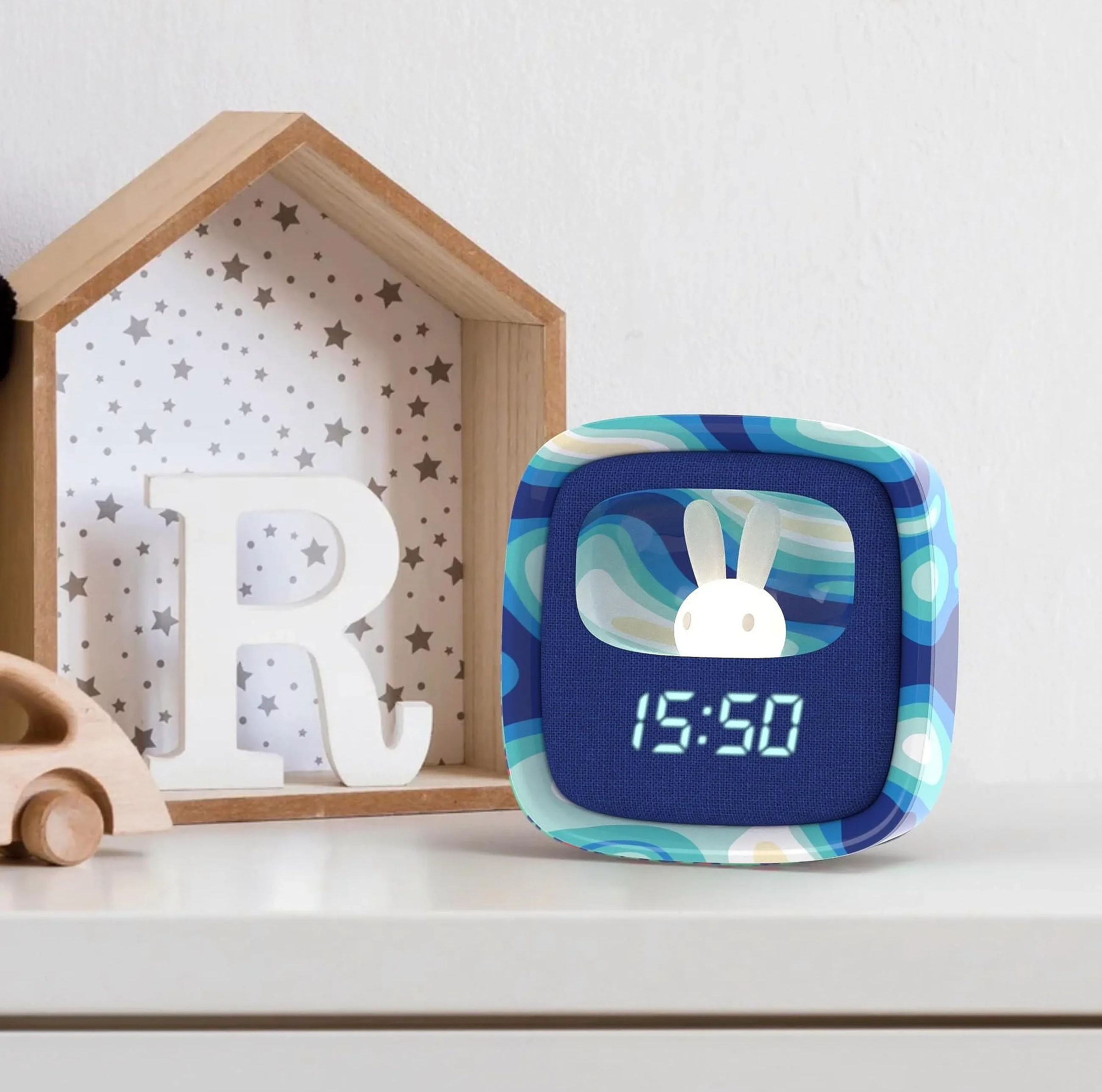 Poți programa ora, data și două alarme. Ceasul deșteptător Billy va veghea asupra micilor tale comori datorită lămpii de veghe integrate în simpatica figurină din silicon flexibil în formă de iepuraș. Intensitatea luminii se ajustează ușor printr-un buton tactil de pe ceas, fiind foarte simplu de utilizat.