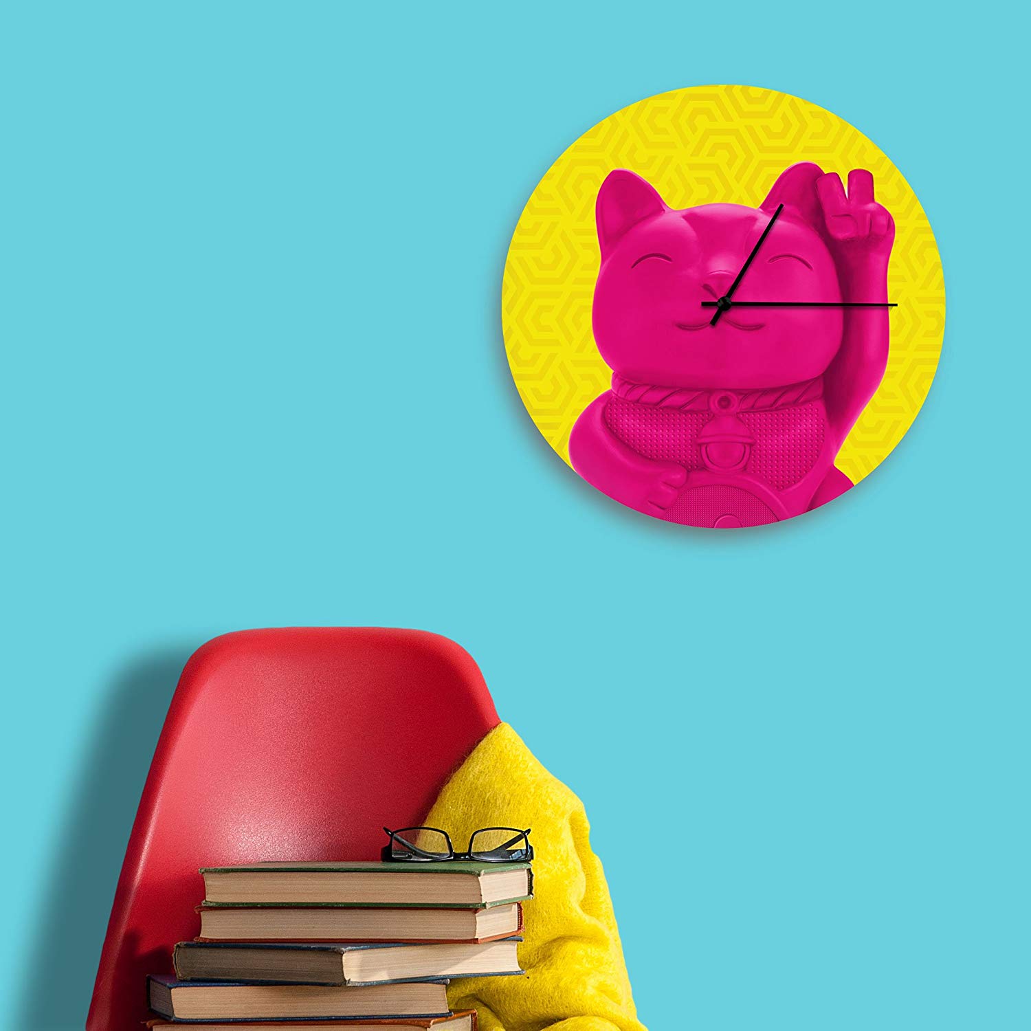 Ceas de perete decorat cu o frumoasa pisicuta roz.