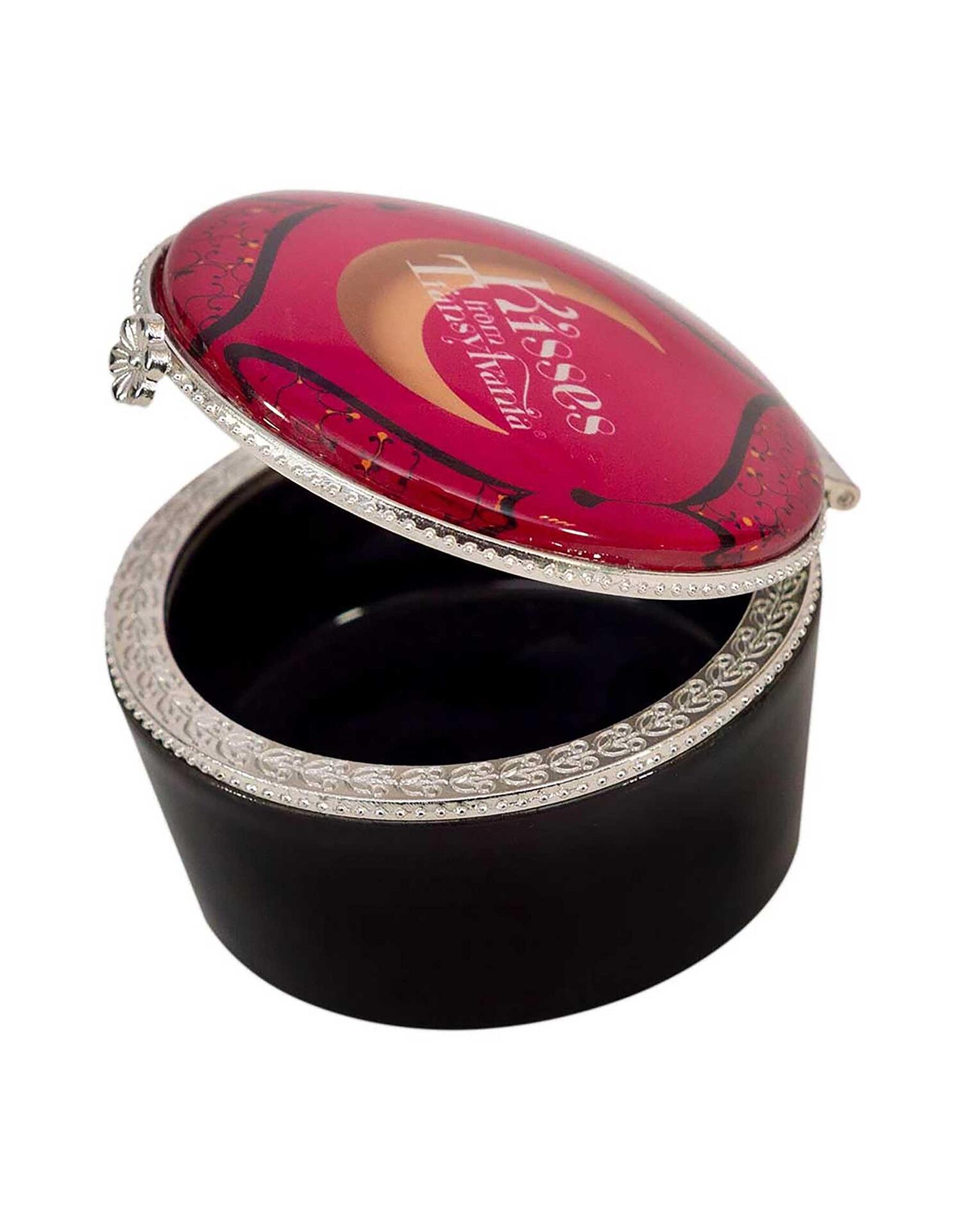 O cutiuta de bijuterii, realizata din ceramica, si-a facut aparitia in colectia „Kisses from Transylvania”. Aceasta este ilustrata cu logo-ul colectiei pe capac, iar baza este de culoare neagra. Cutiuta din ceramica pentru bijuterii „Kisses from Transylvania” are o inaltime de 3.5 cm si o latime de 6 cm. Aceasta este perfecta pentru bijuterii de mici dimensiuni.