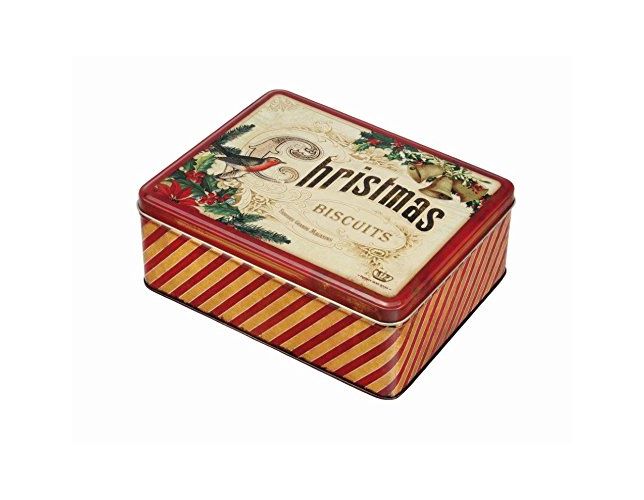 Cutie din metal în care se pot depozita biscuiți și prăjituri. Potrivită pentru a fi dăruită de Crăciun celor dragi.