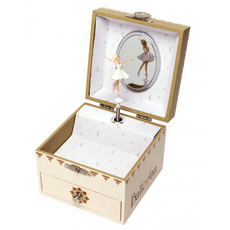 Această cutie muzicală cu sertar pentru bijuterii și oglindă, va încânta pe oricine.