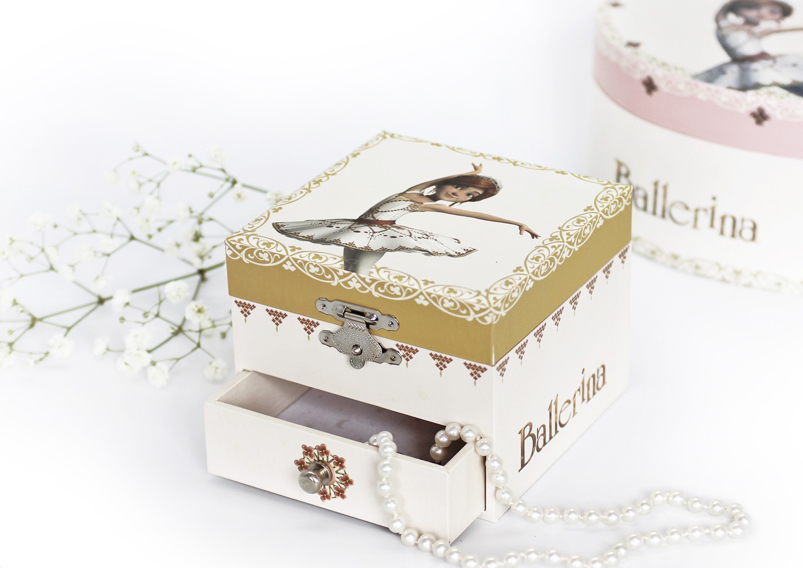 Figurina Balerinei începe să danseze când este activată de mecanisul din spate al cutiei muzicale.