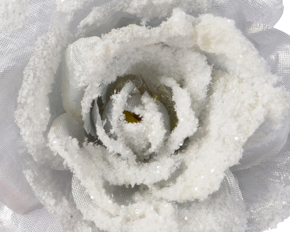 • Decoratiune Craciun - Rose on Clip Glitter Snow (mai multe modele - pret pe bucata)