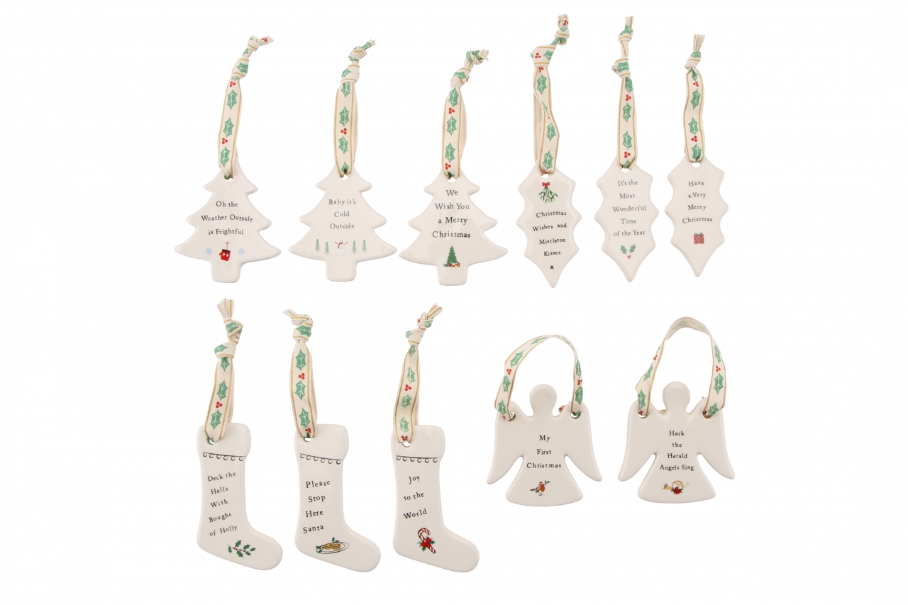 Decorațiune ceramică de Craciun pentru brad in mai multe modele si mesaje.